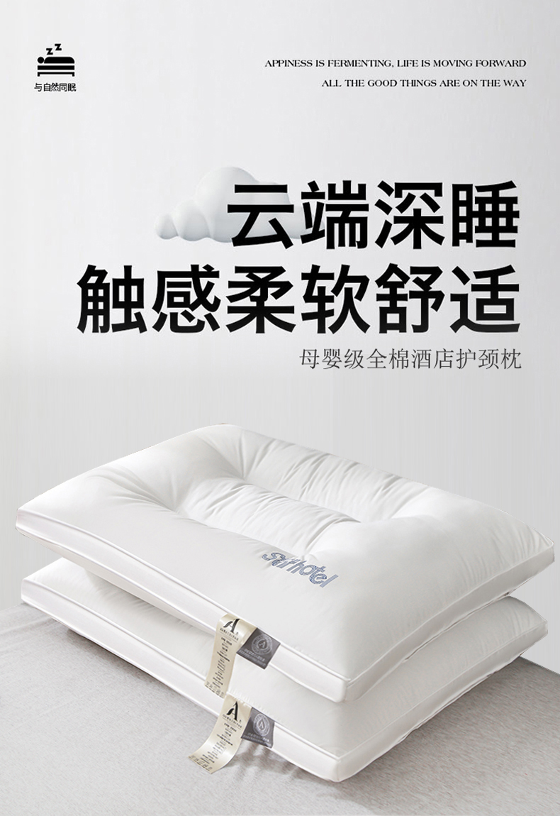 (总)新品 兴丝露枕芯 全棉酒店枕 全棉羽丝枕 全棉护颈枕 健康护颈保健枕 全棉酒店羽丝护颈枕芯