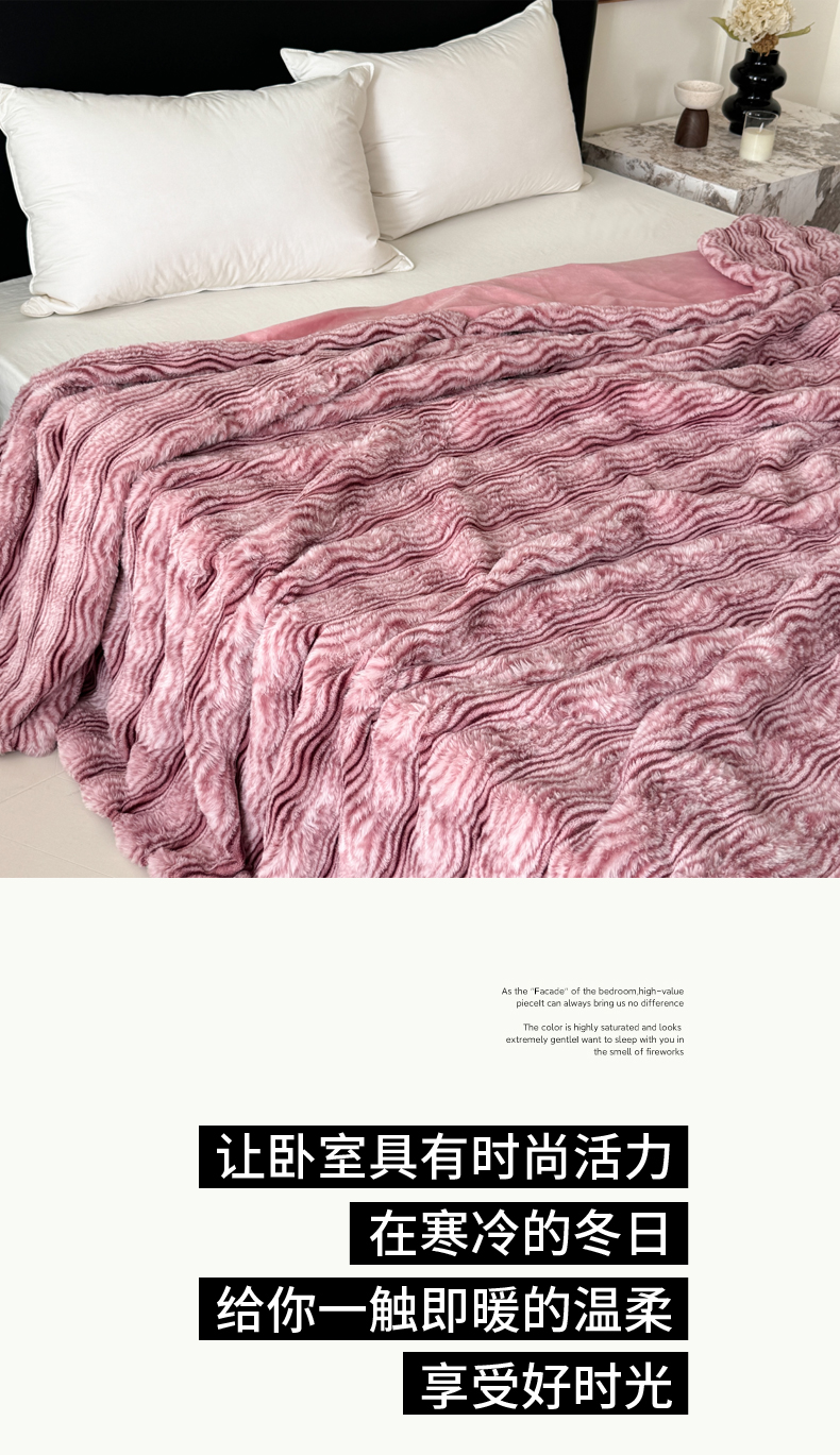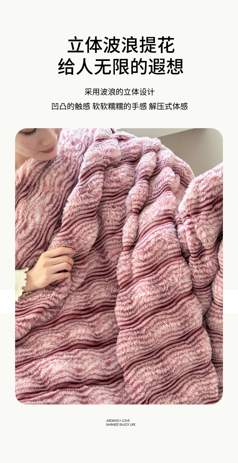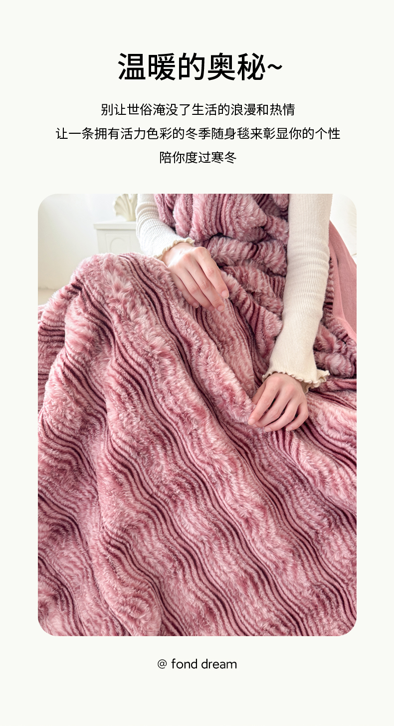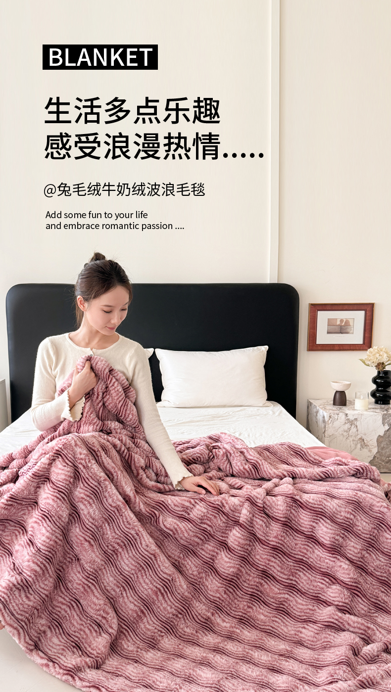 丹本家纺 2025新款加厚大兔毛牛奶绒多功能盖毯毛毯毯子 波浪-玫红