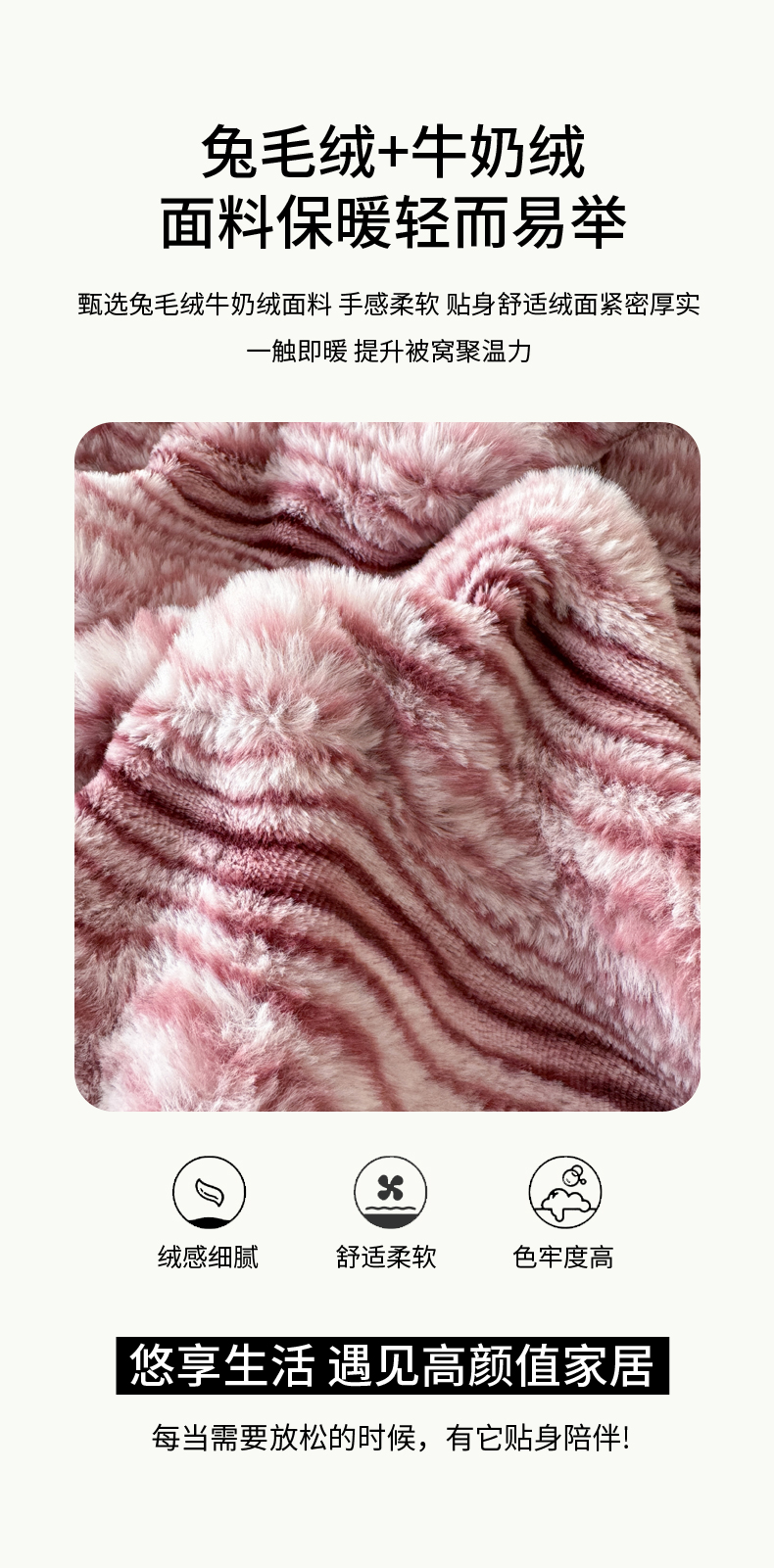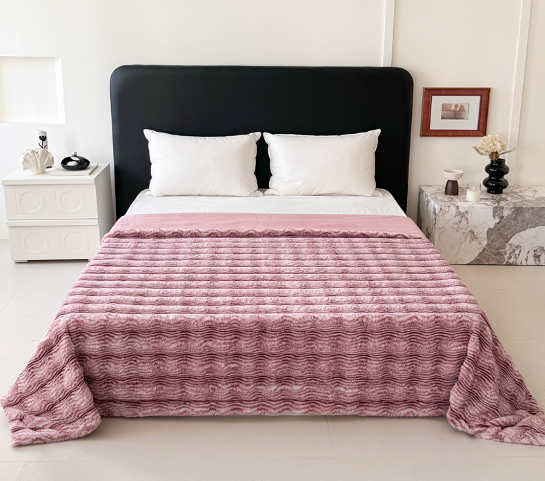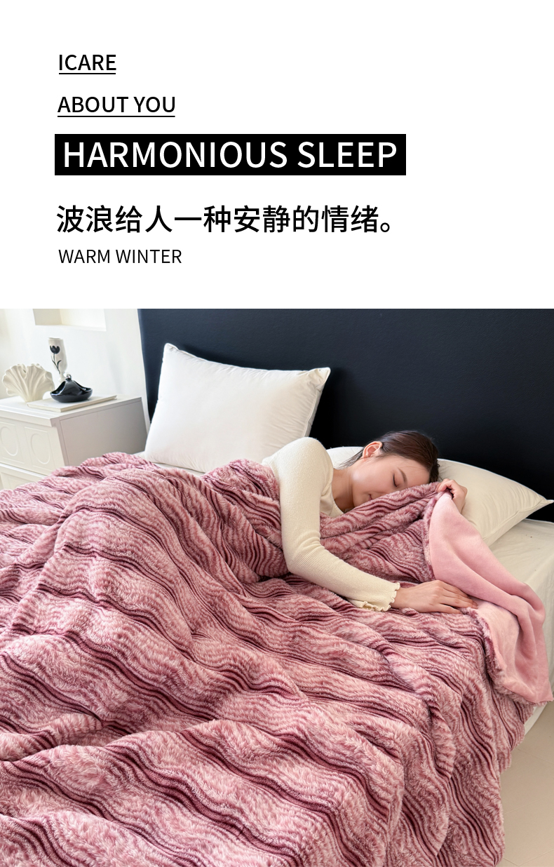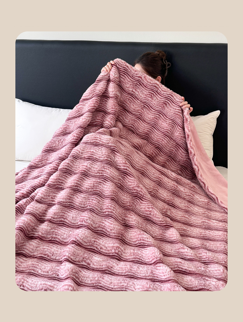 丹本家纺 2025新款加厚大兔毛牛奶绒多功能盖毯毛毯毯子 波浪-玫红