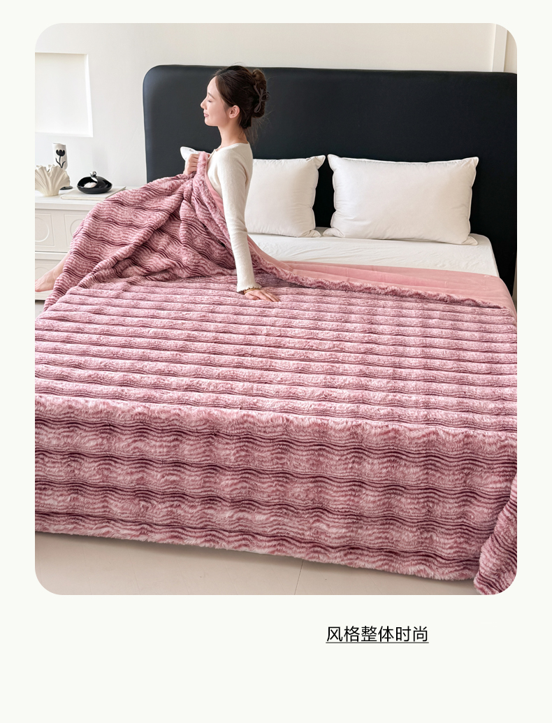 商品名称:丹本家纺 2025新款加厚大兔毛牛奶绒多功能盖毯毛毯毯子 波浪-玫红