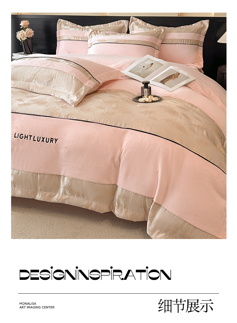(总)博纳家纺 2025新款加厚牛奶绒雕花刺绣拼角四件套-海韵 控价劵后248(严格按控价来),粉玉,高级灰,咖色,香槟