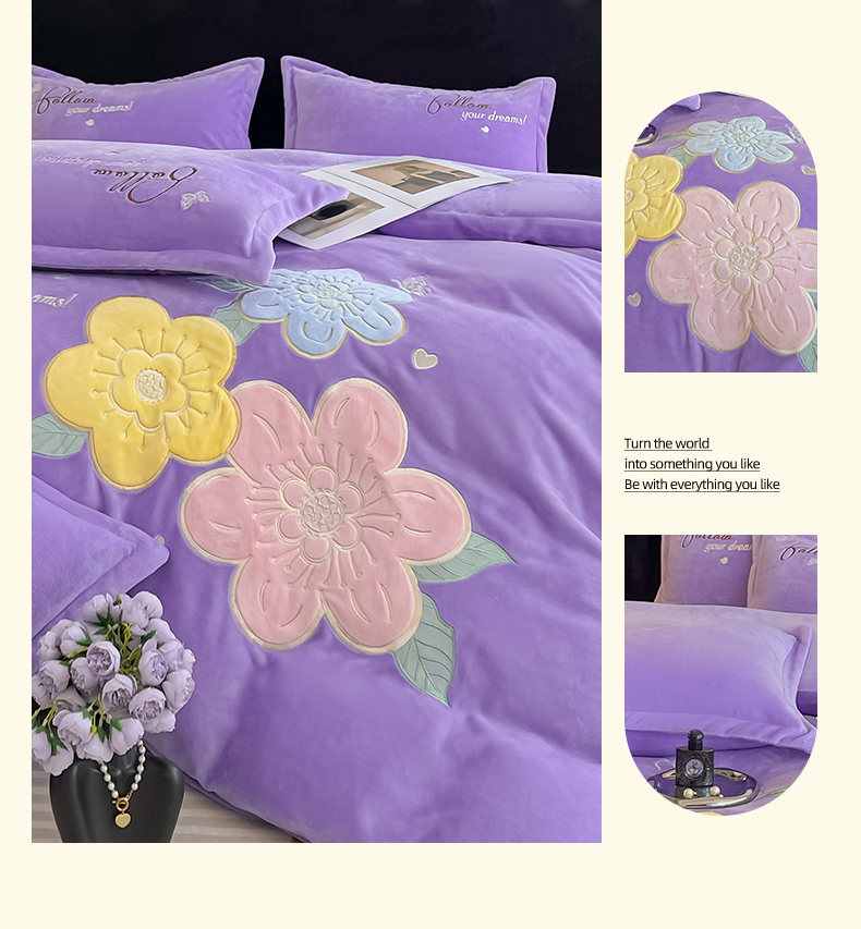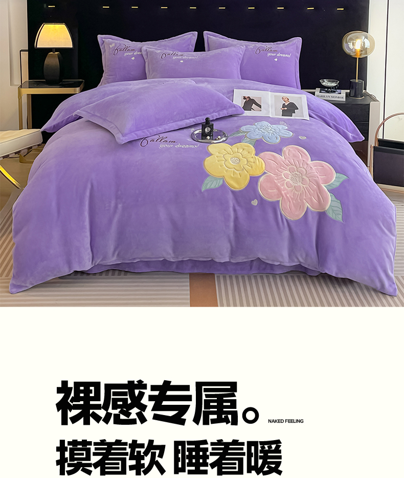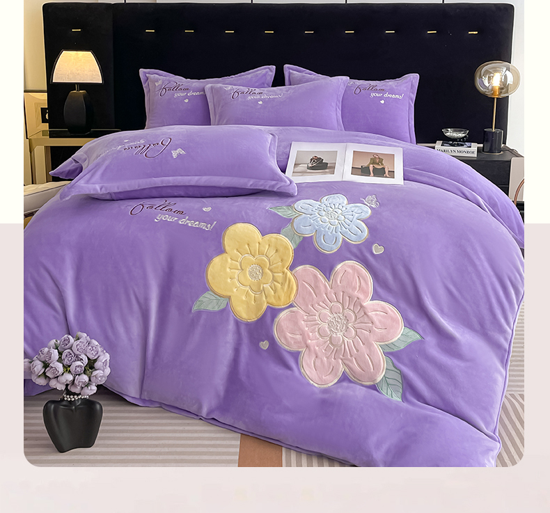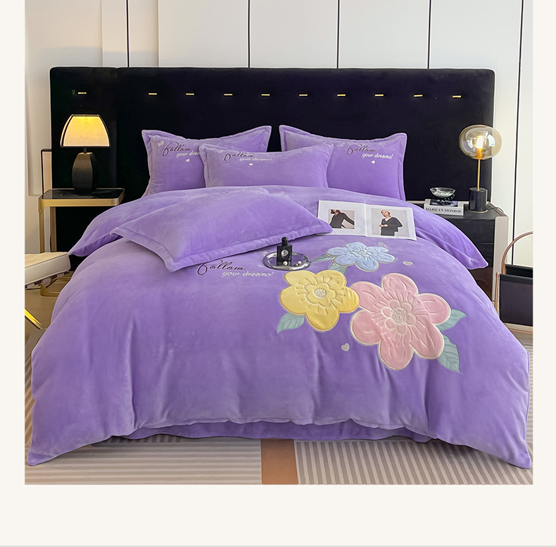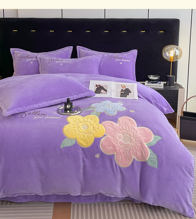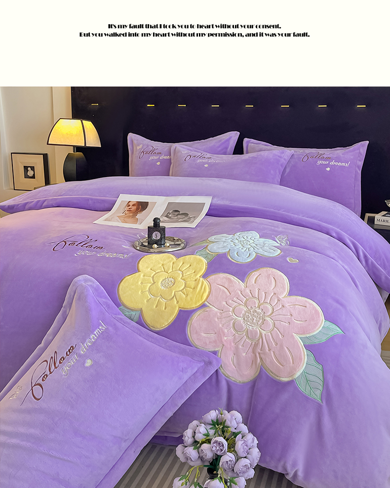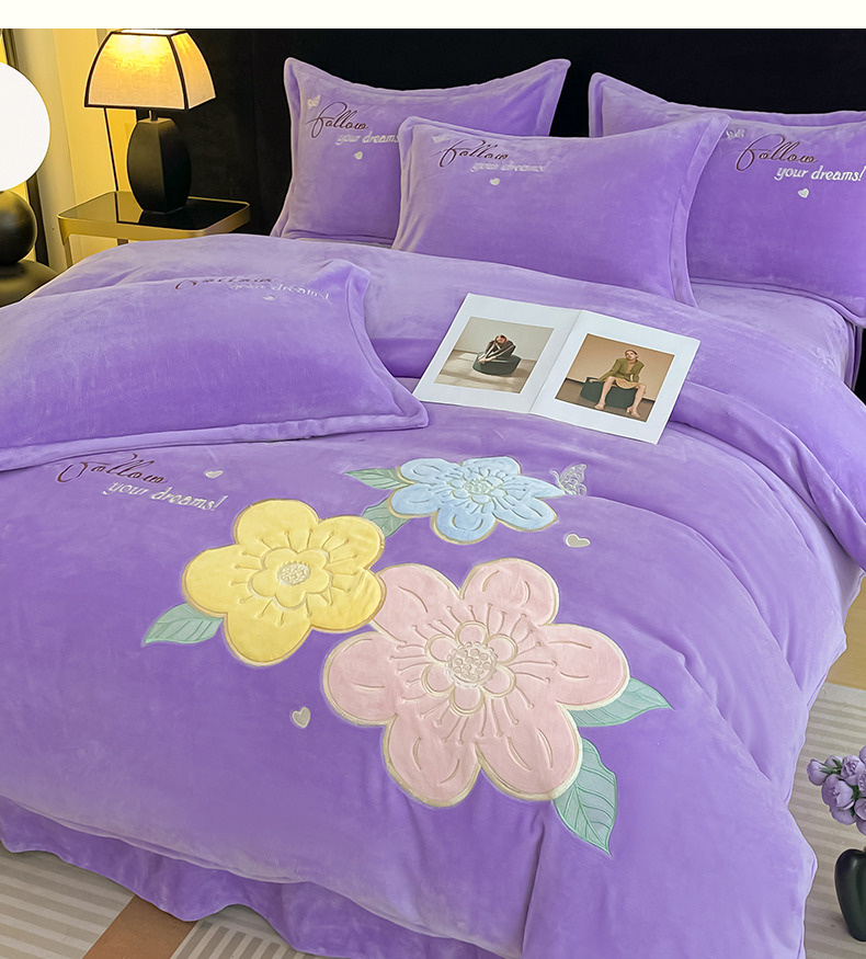 绒小宣 2025新A类牛奶绒贴布绣四件套-花语 花语-浅夏紫