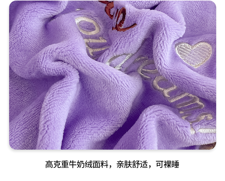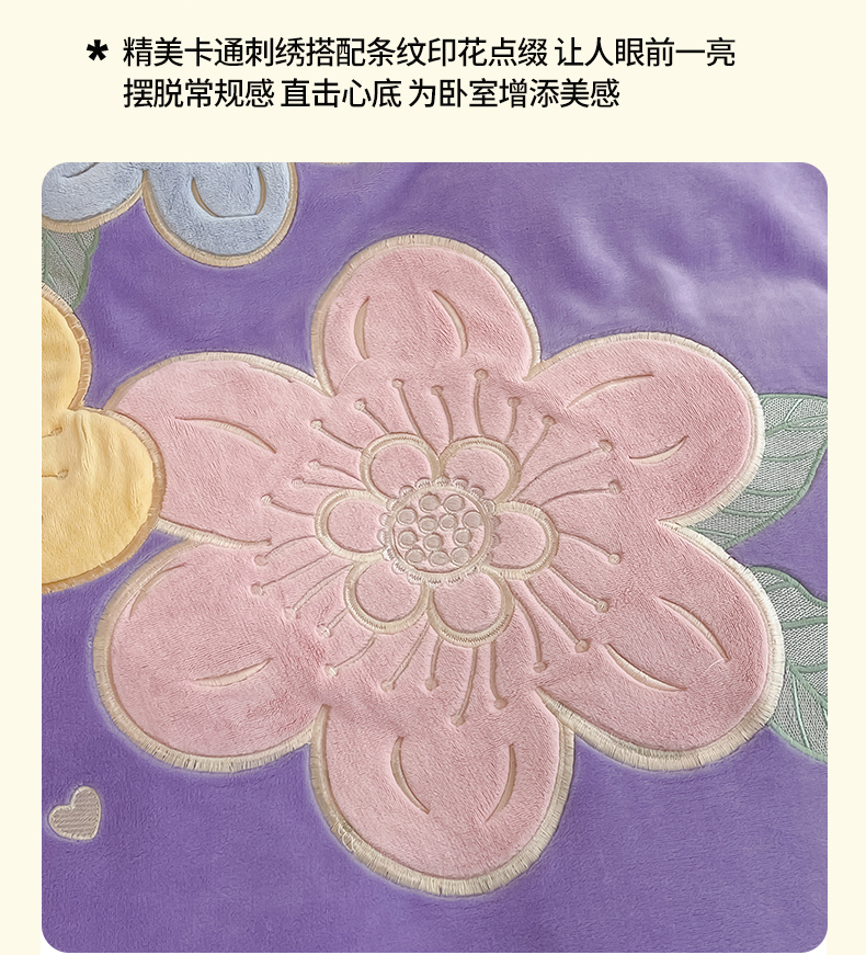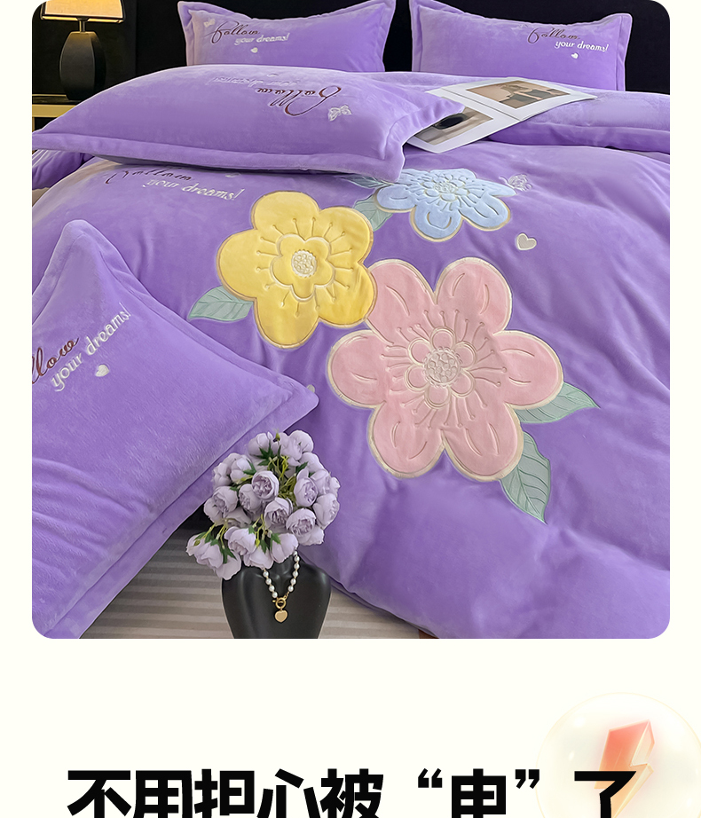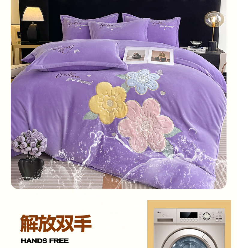 商品名称:绒小宣 2025新A类牛奶绒贴布绣四件套-花语 花语-浅夏紫
