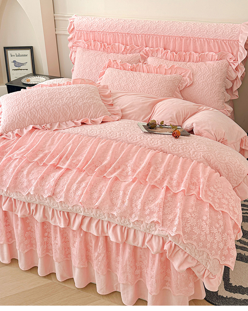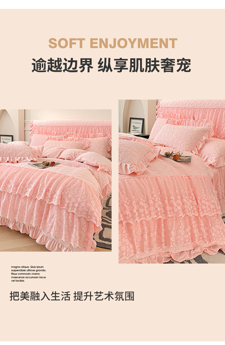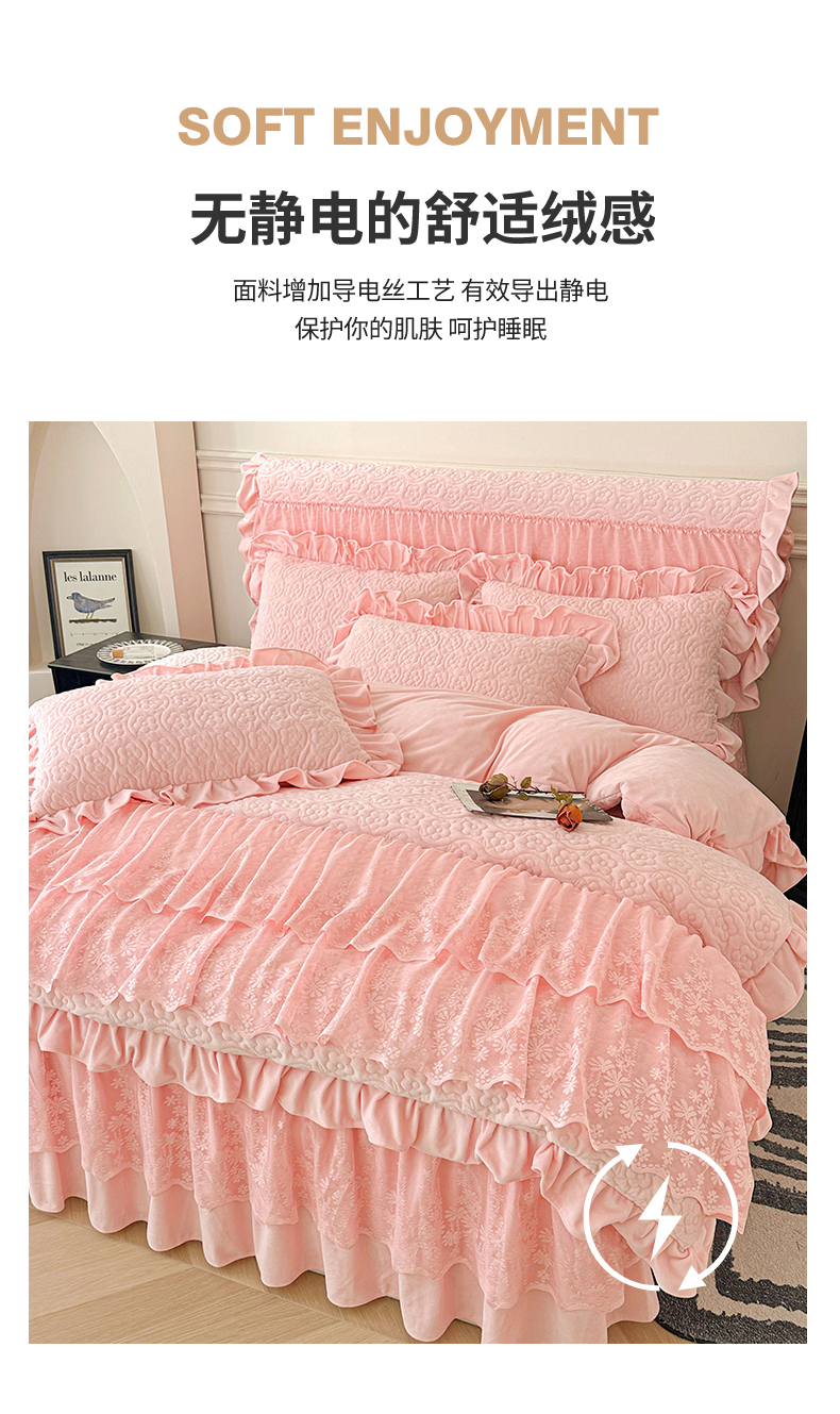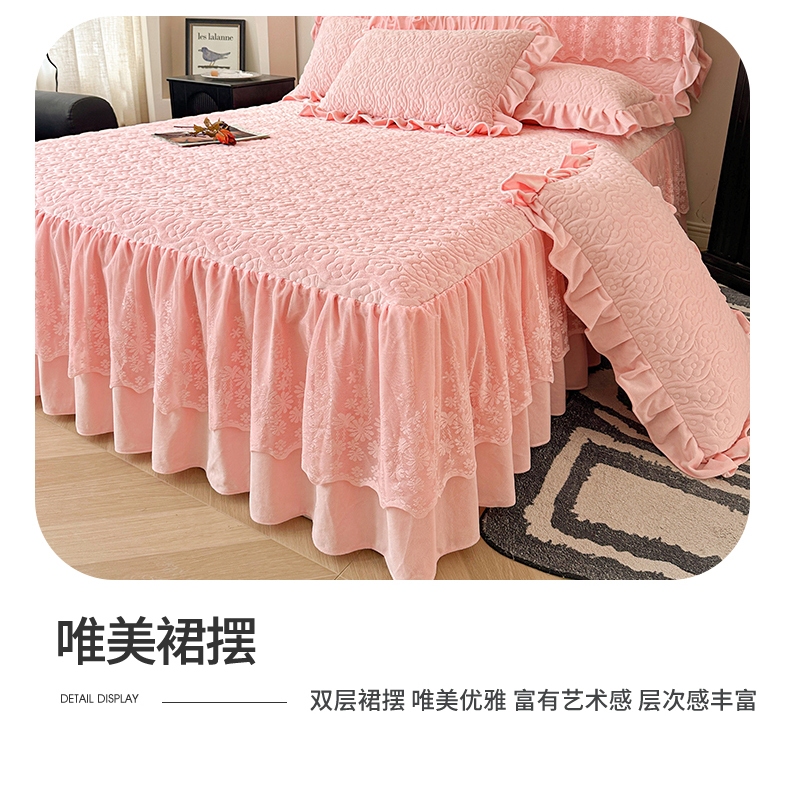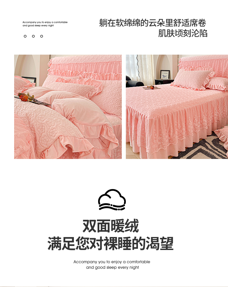 当前位置: 91家纺网 > 商品网购 > 床品套件 > 四件套 > 其它四件套 > 情恒家纺 2025新款宝宝绒夹棉床裙三四五件套-玫瑰盛典 玫瑰盛典 香妃粉