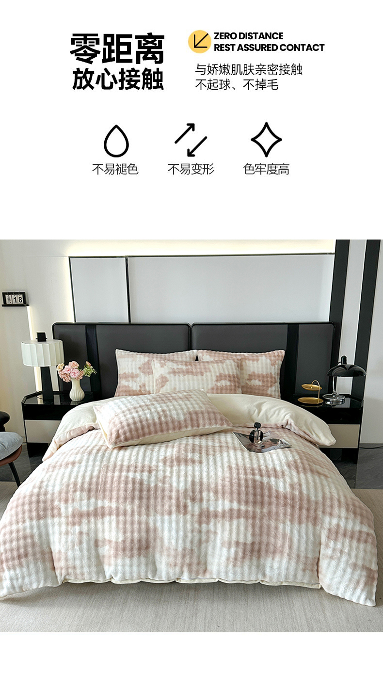 梵克保罗 2025秋冬新款炫彩水墨画仿兔毛绒大泡泡绒印花大理石纹渐变高克重四件套 奶白