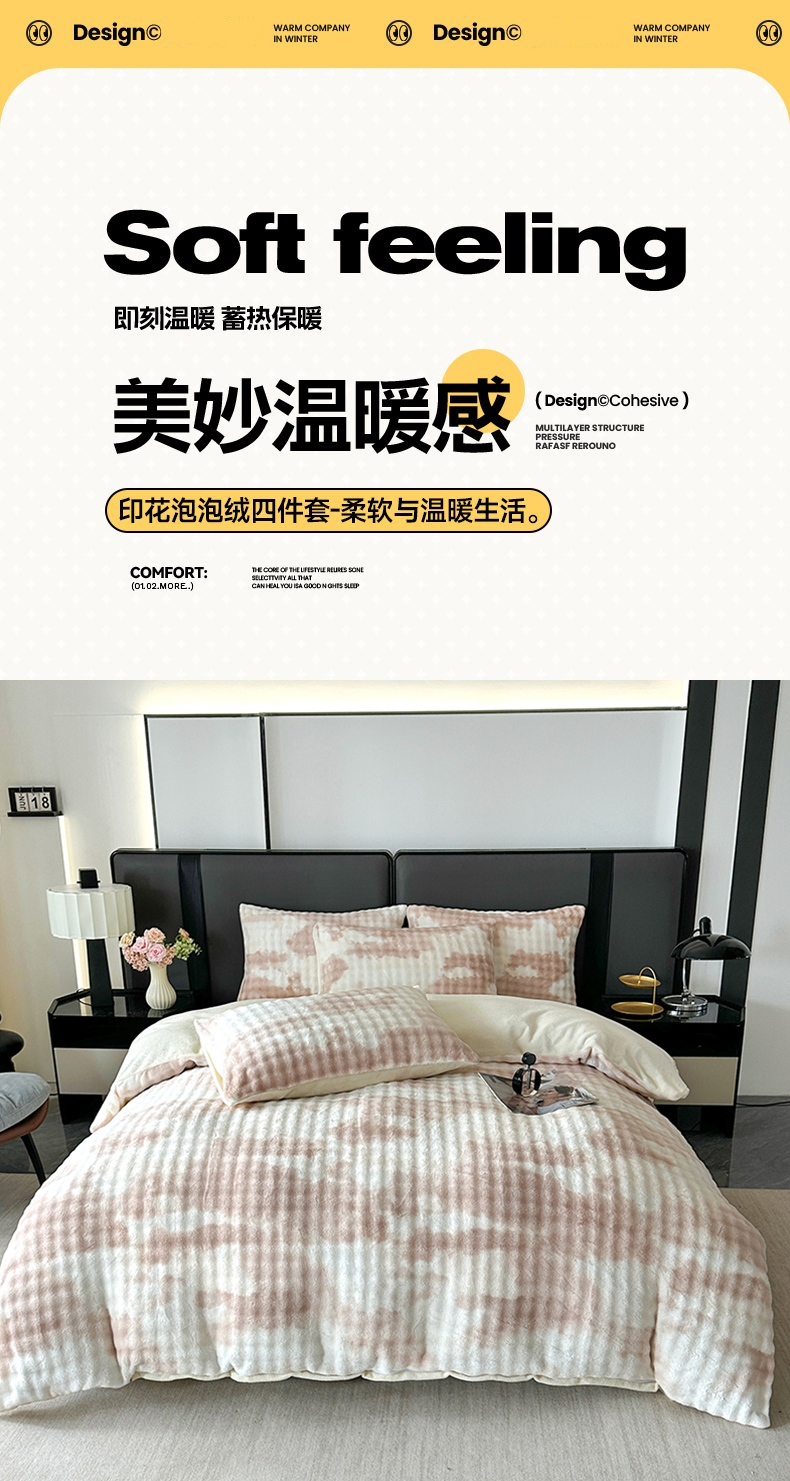 (总)梵克保罗 2025秋冬新款炫彩水墨画仿兔毛绒大泡泡绒印花大理石纹渐变高克重四件套,奶白,石墨灰,炫彩咖,炫彩蓝,优雅粉
