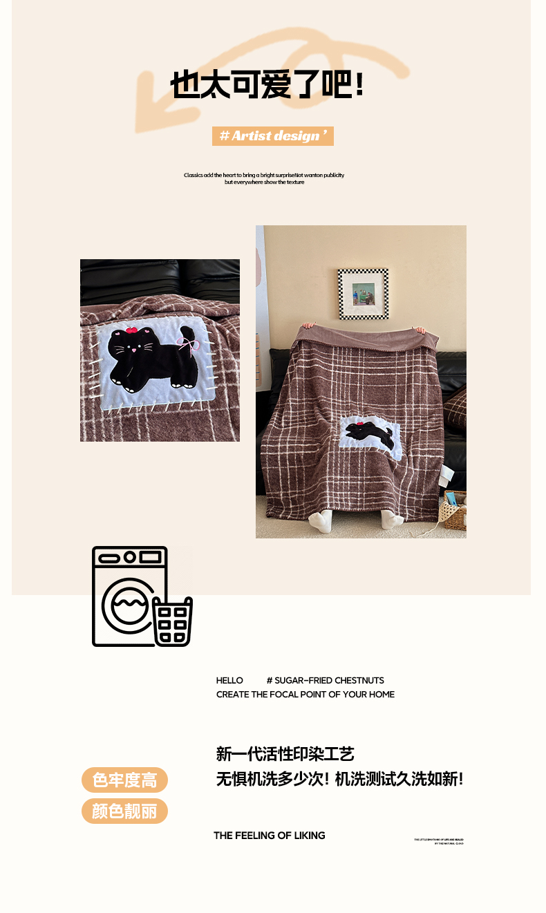 商品名称:宇航家纺 2025新款美拉德色系仿羊毛绒牛奶绒毛毯盖毯办公毯 盖毯-煤球小猫