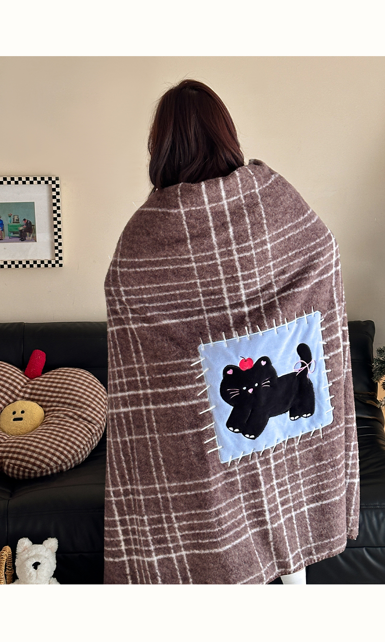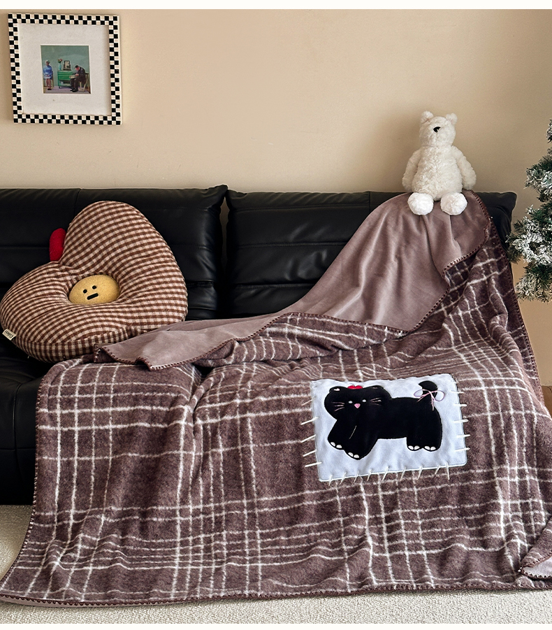 宇航家纺 2025新款美拉德色系仿羊毛绒牛奶绒毛毯盖毯办公毯 盖毯-煤球小猫