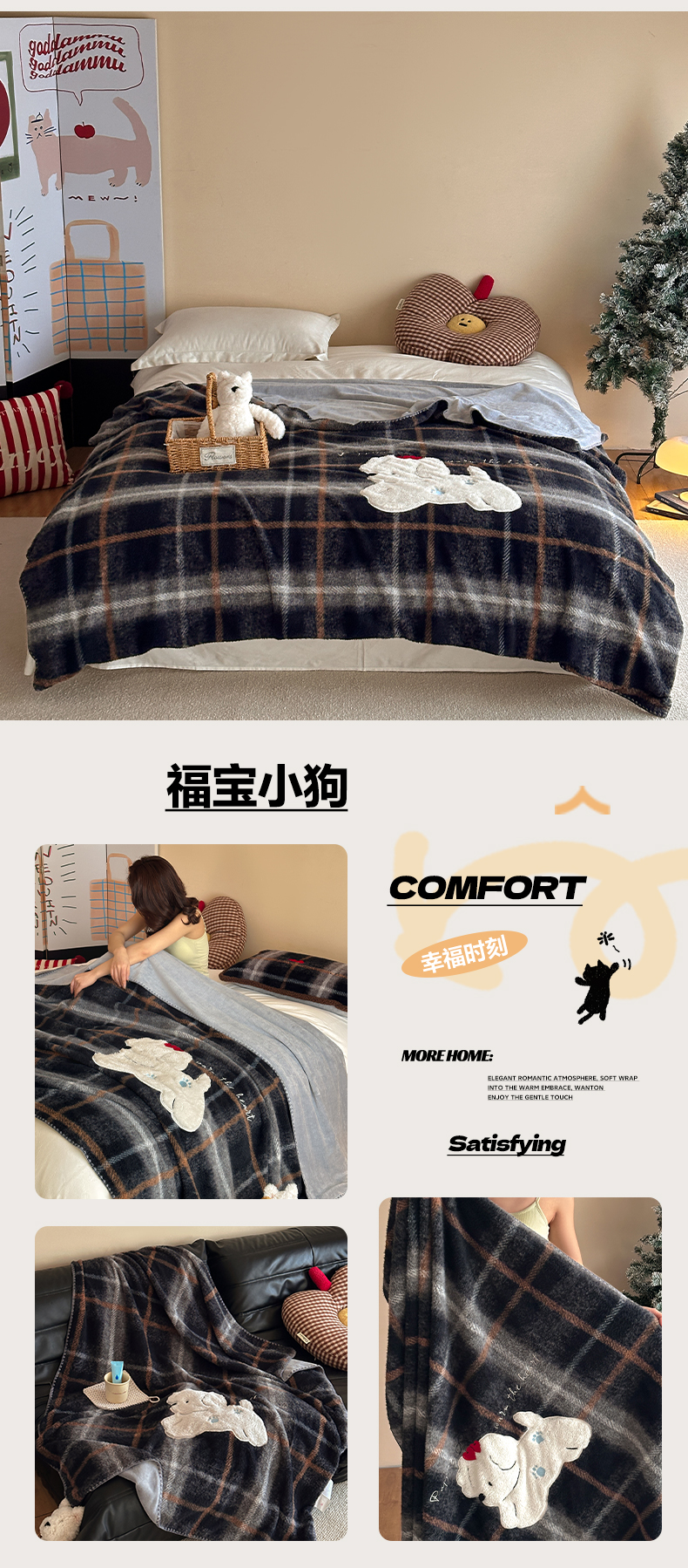 (总)宇航家纺 2025新款美拉德色系仿羊毛绒牛奶绒毛毯盖毯办公毯,盖毯-煤球小猫,盖毯-呆萌猫咪,盖毯-福宝小狗,盖毯-三只小猫
