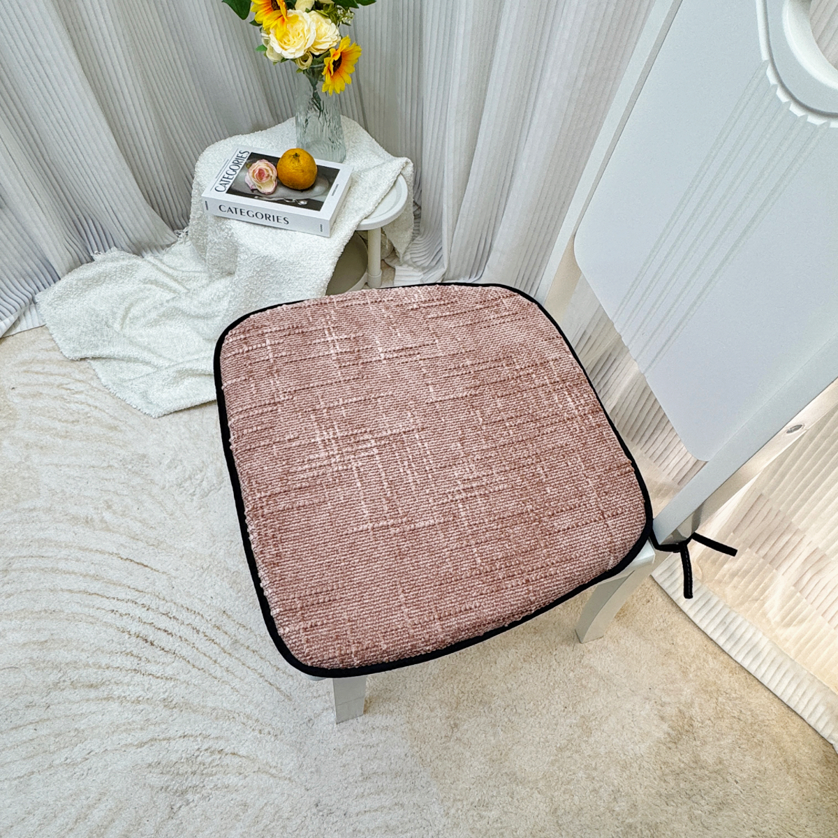 商品名称:爱家居 2025新款餐椅垫坐垫轻奢马蹄形四季通用雪尼尔防滑纯色椅子垫餐厅家用可拆洗【纯色雪尼尔坐垫常规有现货、其它规格可定制】 雪尼尔—豆沙粉