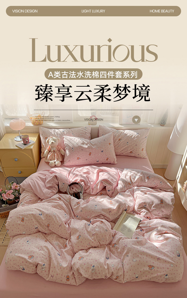 当前位置: 91家纺网 > 商品网购 > 床品套件 > 四件套 > 水洗棉四件套 > 凯洛奇 2026新款A类仿棉四件套古法水洗棉小清新印花四件套单被套系列 童趣绘彩