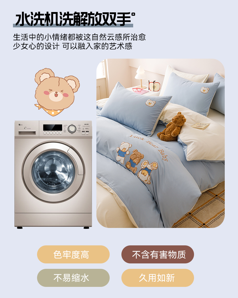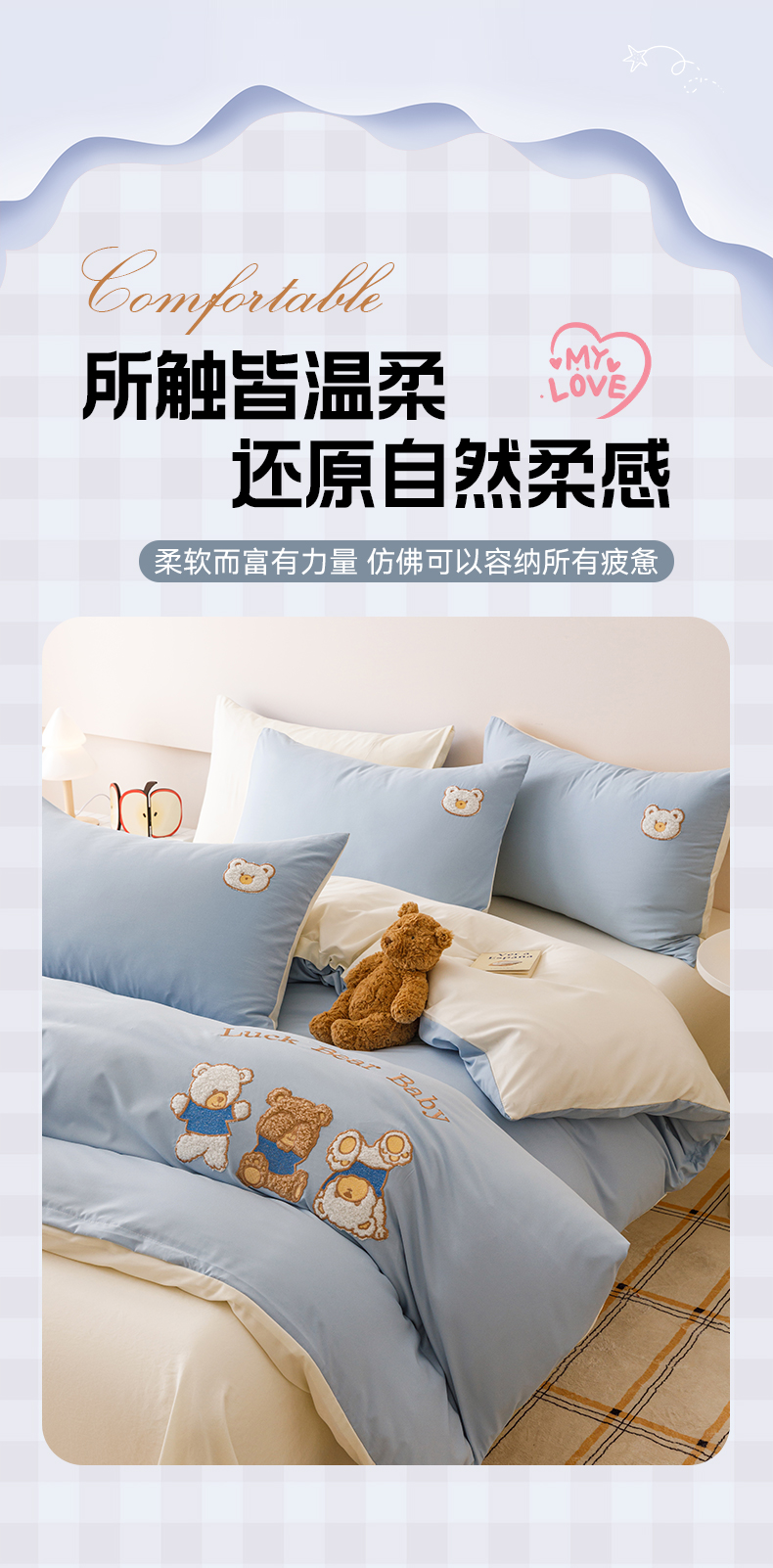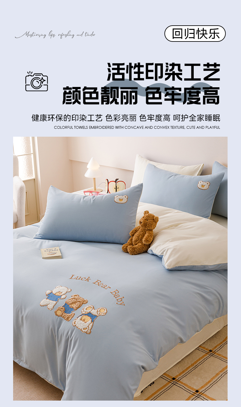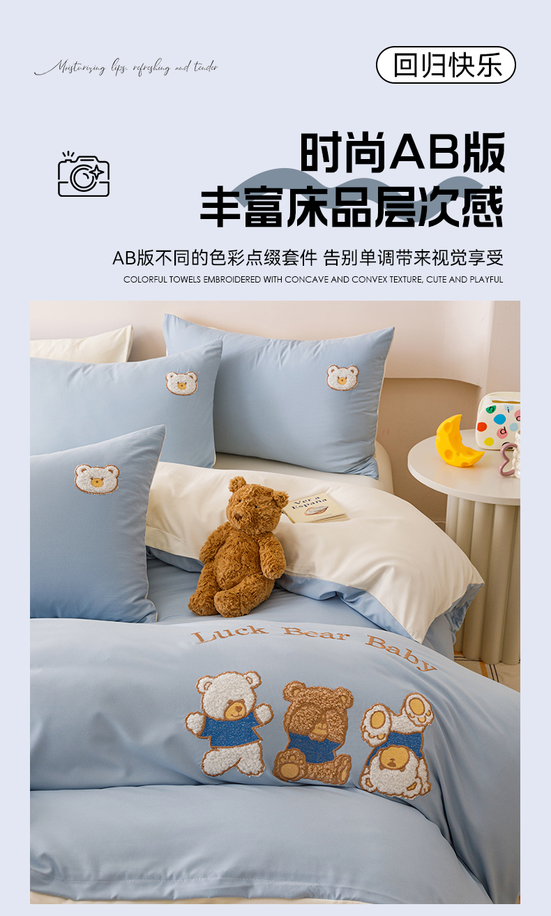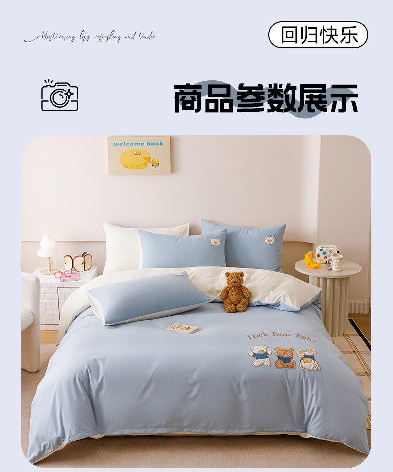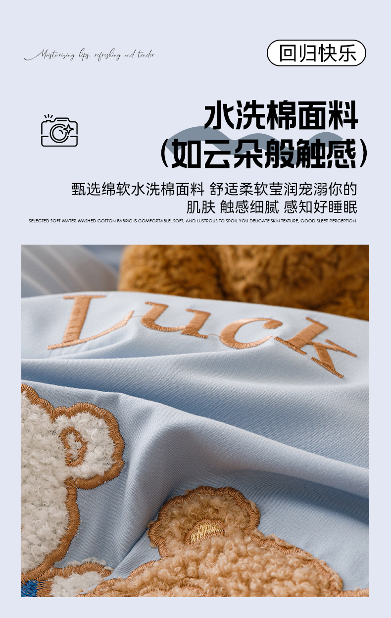 当前位置: 91家纺网 > 商品网购 > 床品套件 > 四件套 > 水洗棉四件套 > 悦兴家纺 2025新款A类水洗棉卡通幸运熊四件套(含买家秀) 幸运熊奶蓝