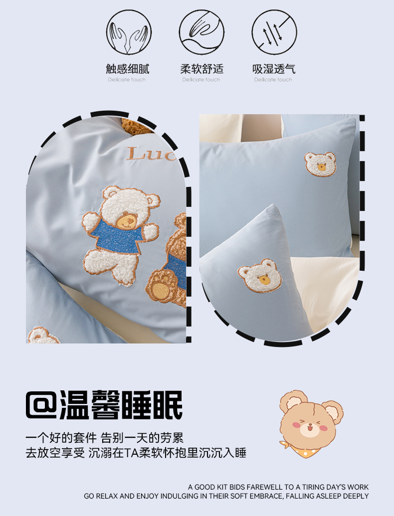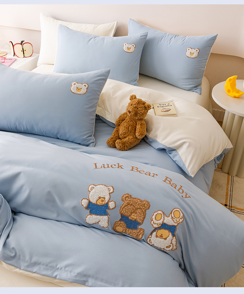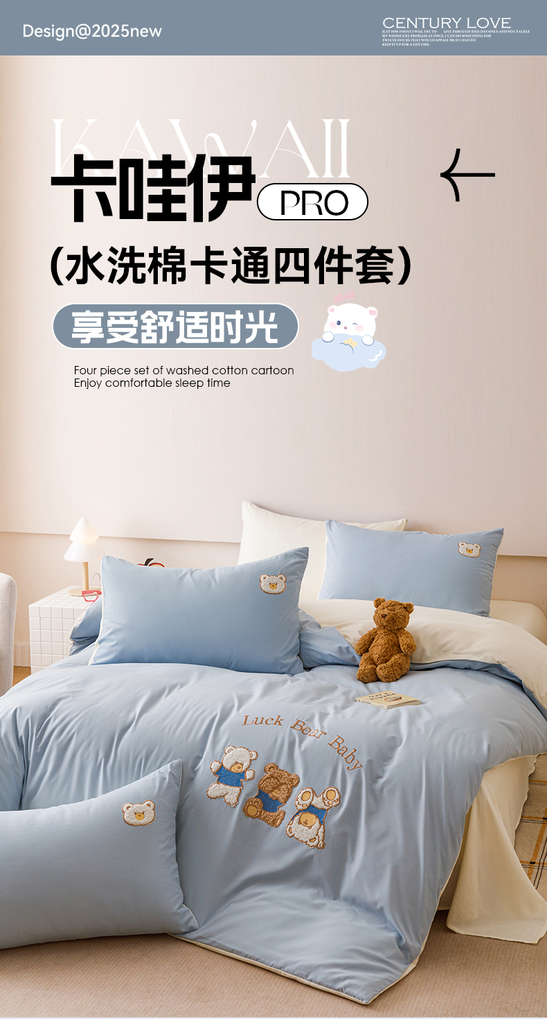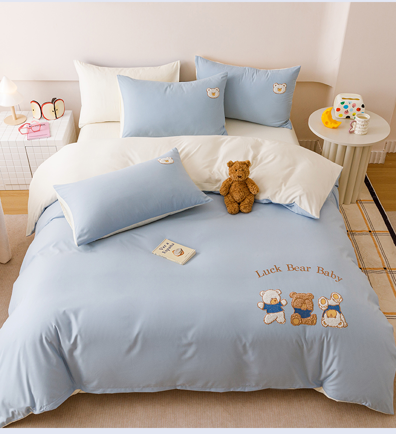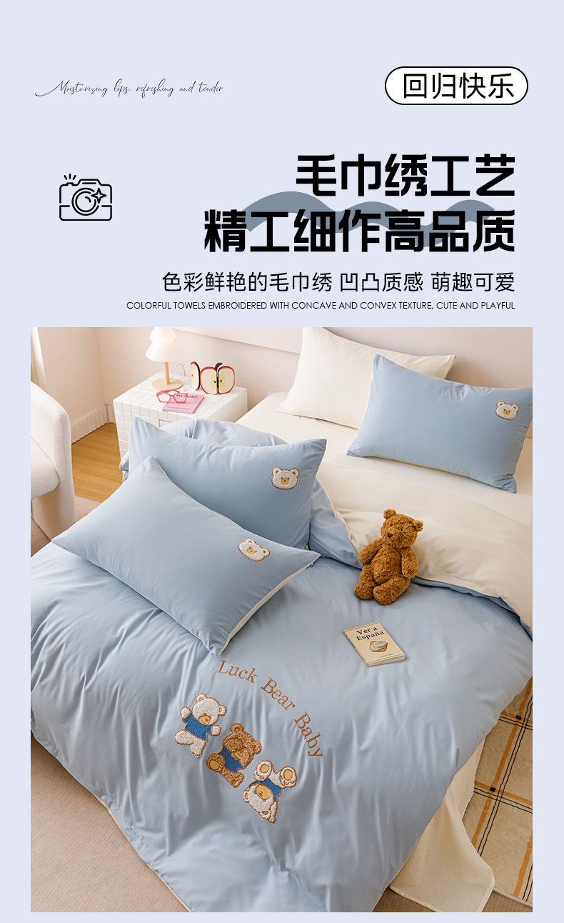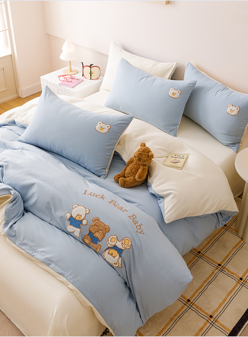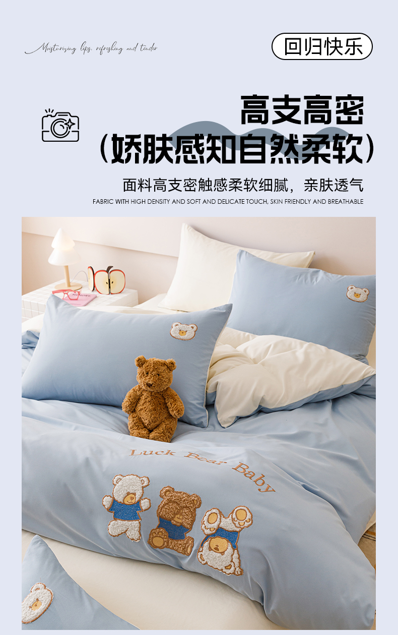 当前位置: 91家纺网 > 商品网购 > 床品套件 > 四件套 > 水洗棉四件套 > 悦兴家纺 2025新款A类水洗棉卡通幸运熊四件套(含买家秀) 幸运熊奶蓝