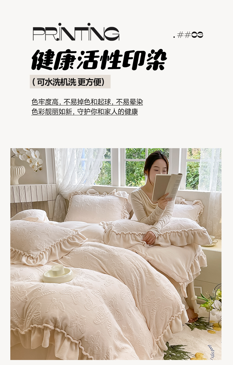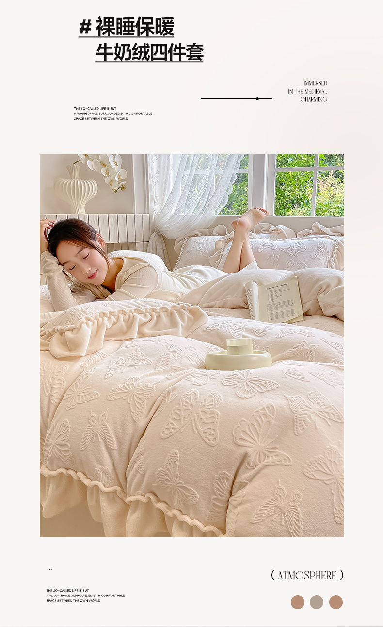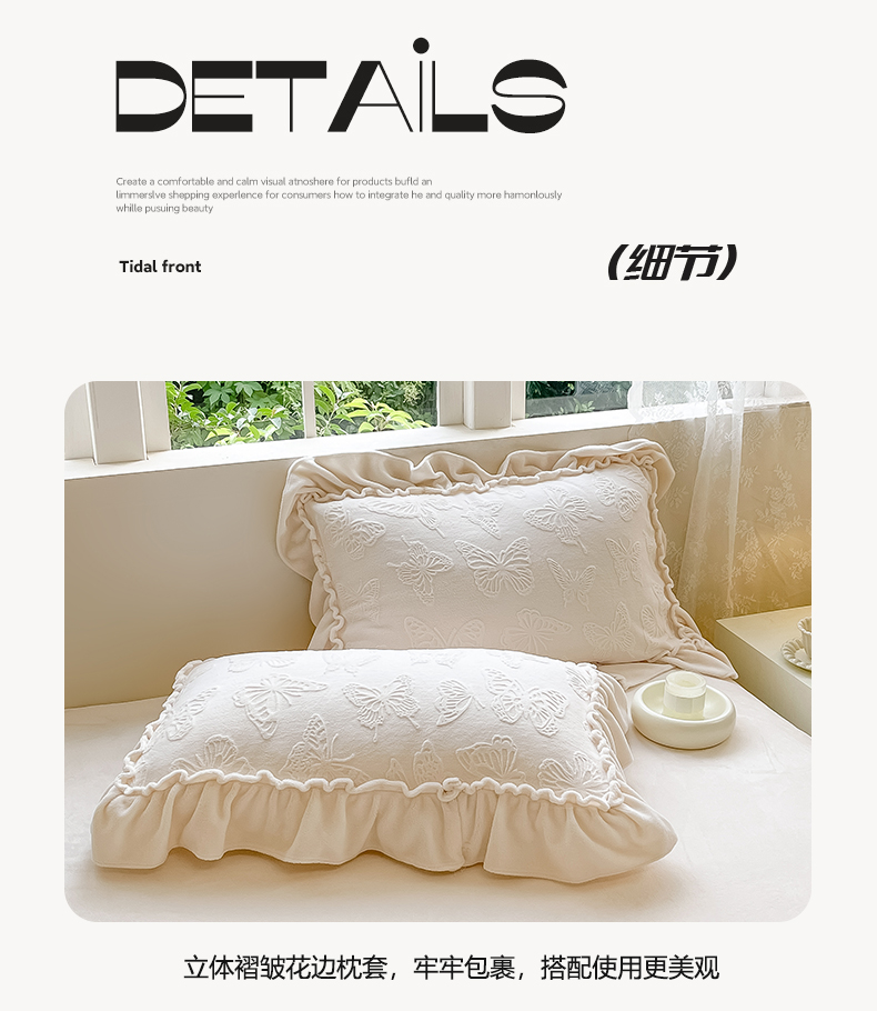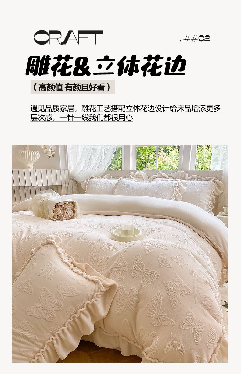 商品名称:水云缦 2025新款牛奶绒木耳边四件套-蝶舞 蝶舞-奶昔白