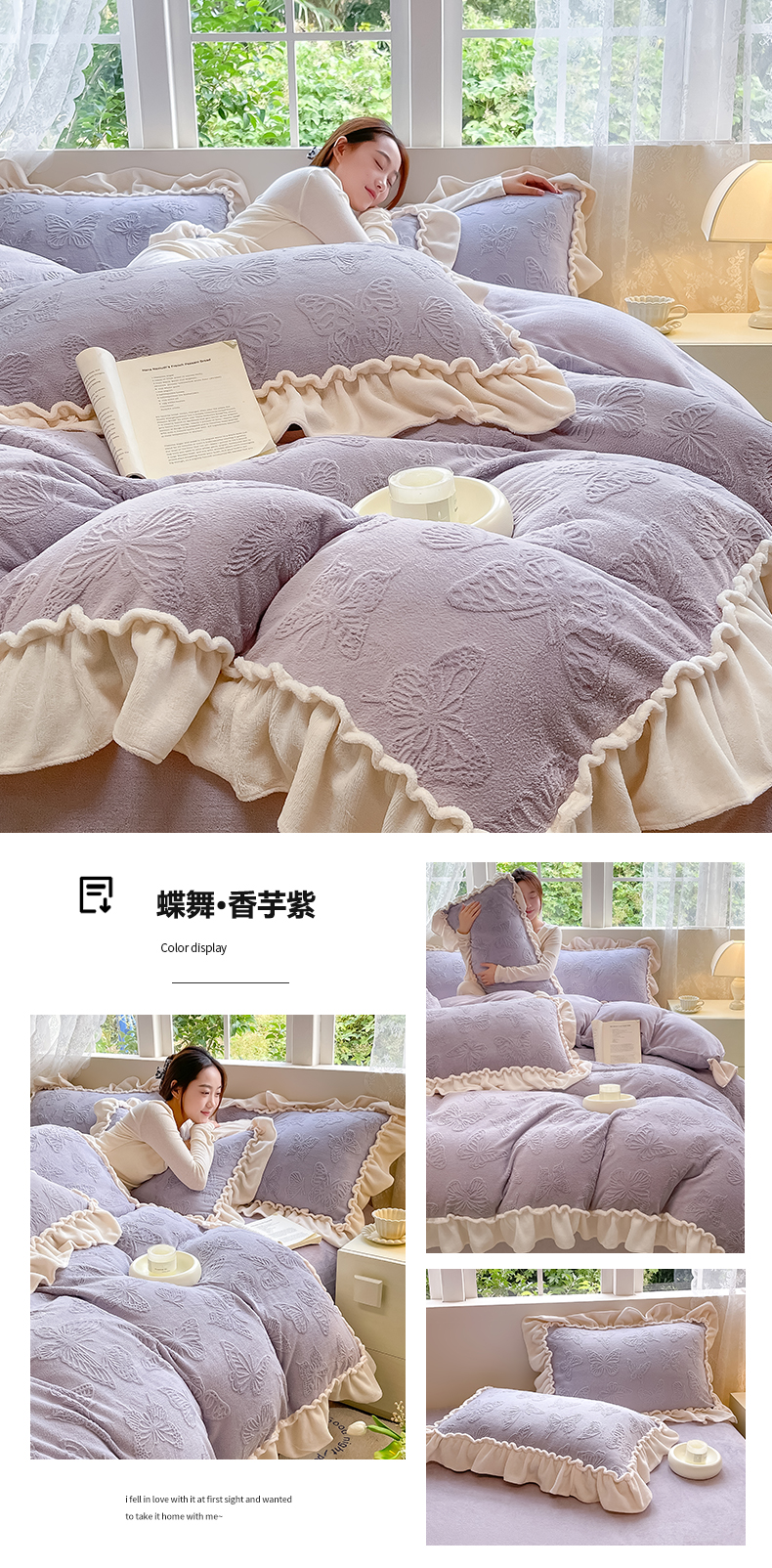 (总)水云缦 2025新款牛奶绒木耳边四件套-蝶舞系列,蝶舞-樱花粉,蝶舞-奶昔白,蝶舞-天空蓝,蝶舞-香芋紫,蝶舞-香槟金