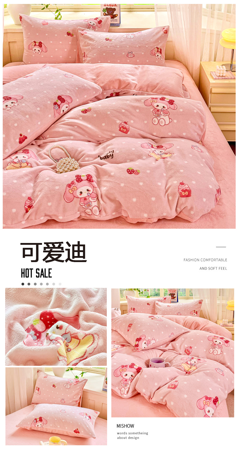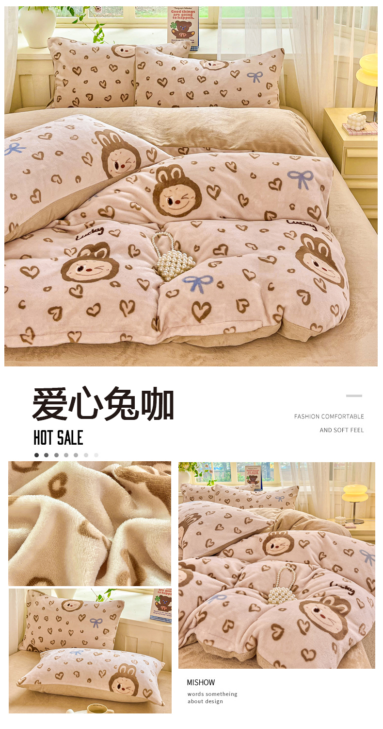 (总)斯卡诺家纺 2025小清新加厚高克重牛奶绒四件套网红直播爆款,樱桃,北欧兔,贝拉,兰心小鸭,萌萌兔,趣味草莓,爱心花朵,爱心灰,爱心熊粉,彩虹,黑白荷花,花边动物,快乐小熊,萝卜,绿野仙踪,魅影,萌萌狗,迷你小熊,牡丹花,泥点子母,气球小象,水果,蝴蝶结,咖爱心,恐龙世界,花妖