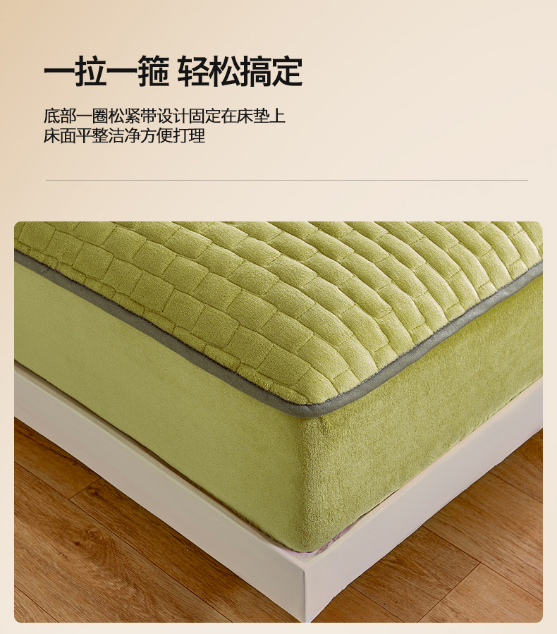 (总)天之澜家纺 2025新款A类舒棉绒提花夹棉加厚床褥垫,灰,白,灰蓝,橘,绿