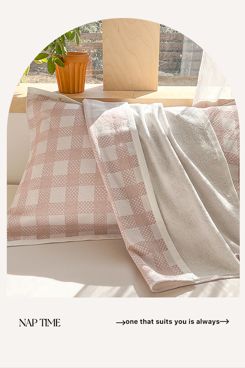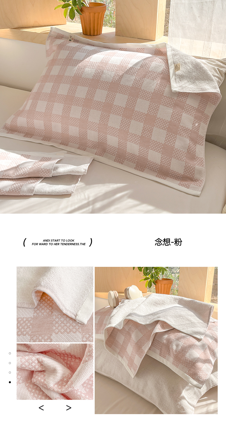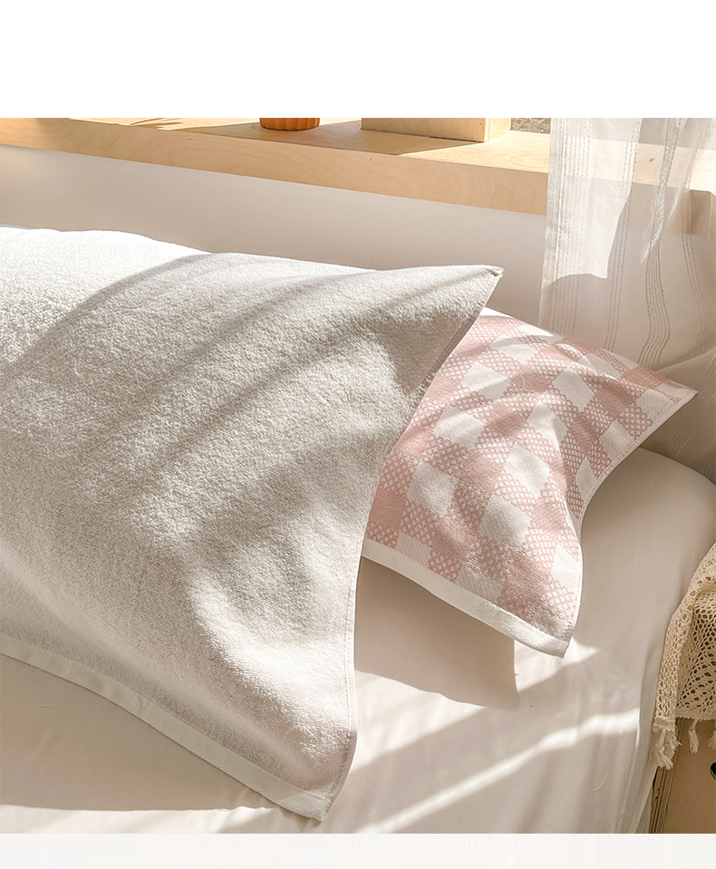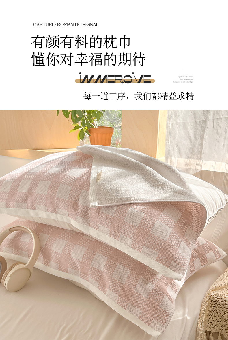 商品名称:美宜家 2025新品全棉枕巾简约无印双人单人织边里外棉枕巾 念想-粉 48*74cm一对