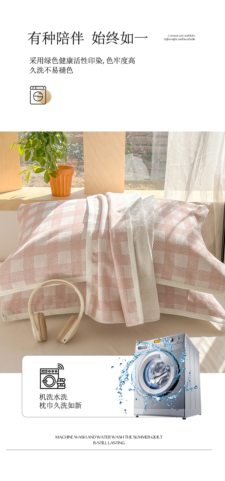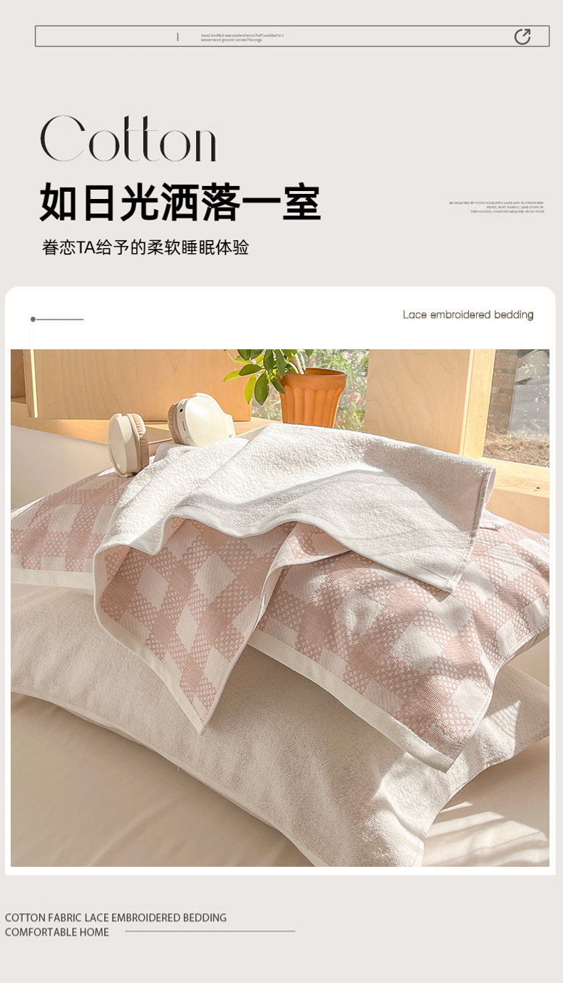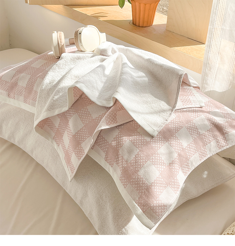 商品名称:美宜家 2025新品全棉枕巾简约无印双人单人织边里外棉枕巾 念想-粉 48*74cm一对