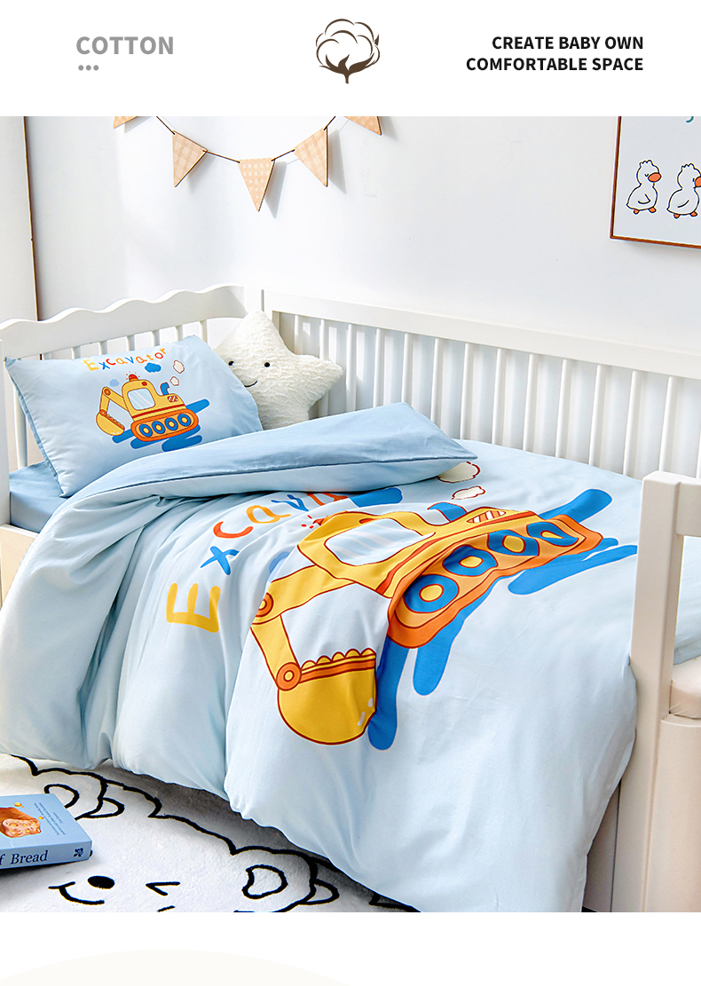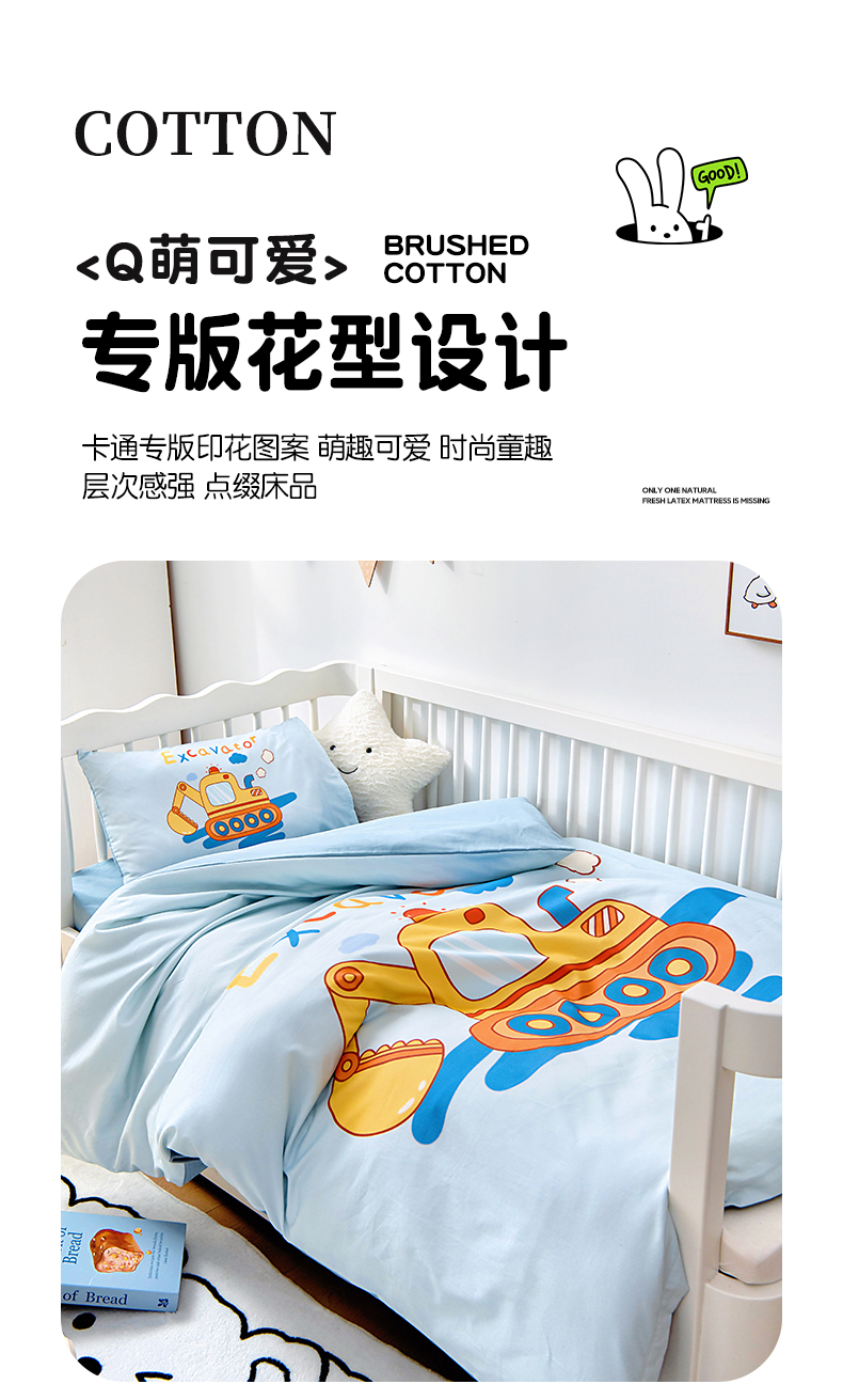 • 91家纺网 家纺一手货源 找家纺 (总)梵赫 2025新款加厚牛奶绒贴布绣原创卡通幼儿园套件儿童三件套,超级小萌怪,可爱小鸭,围巾兔,机灵小挖机,巧克力熊,组合,大象先生