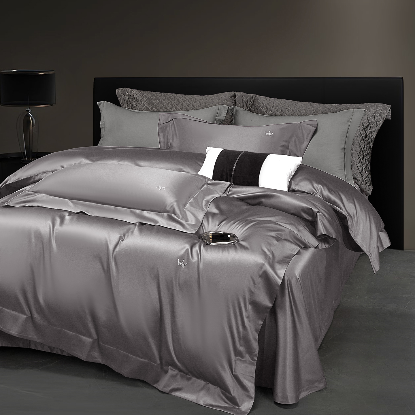 总玖玖爱家纺 纯棉100支贡缎长绒棉刺绣被套三件套四件套加大四件套,白色,高级灰,卡其,蓝灰,绿色,浅桔,深蓝,紫豆沙