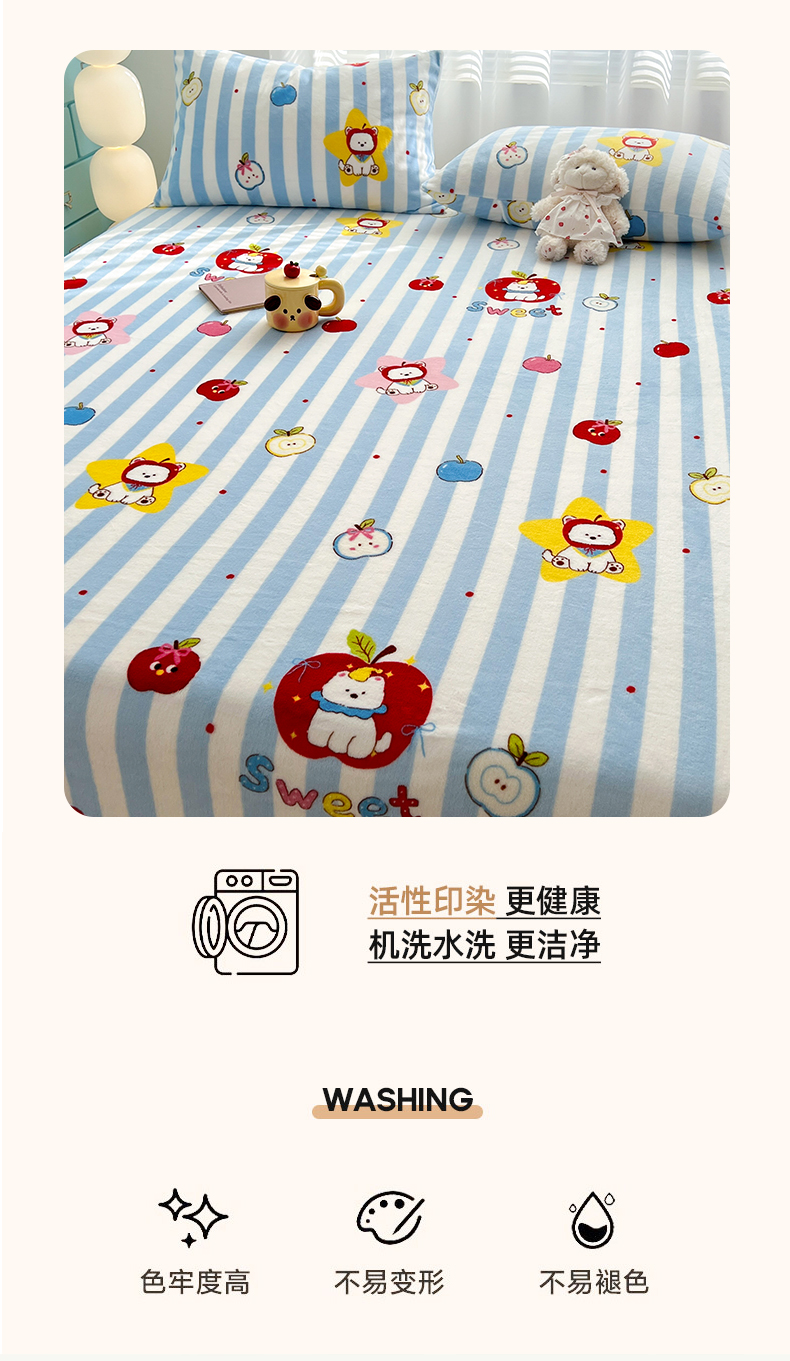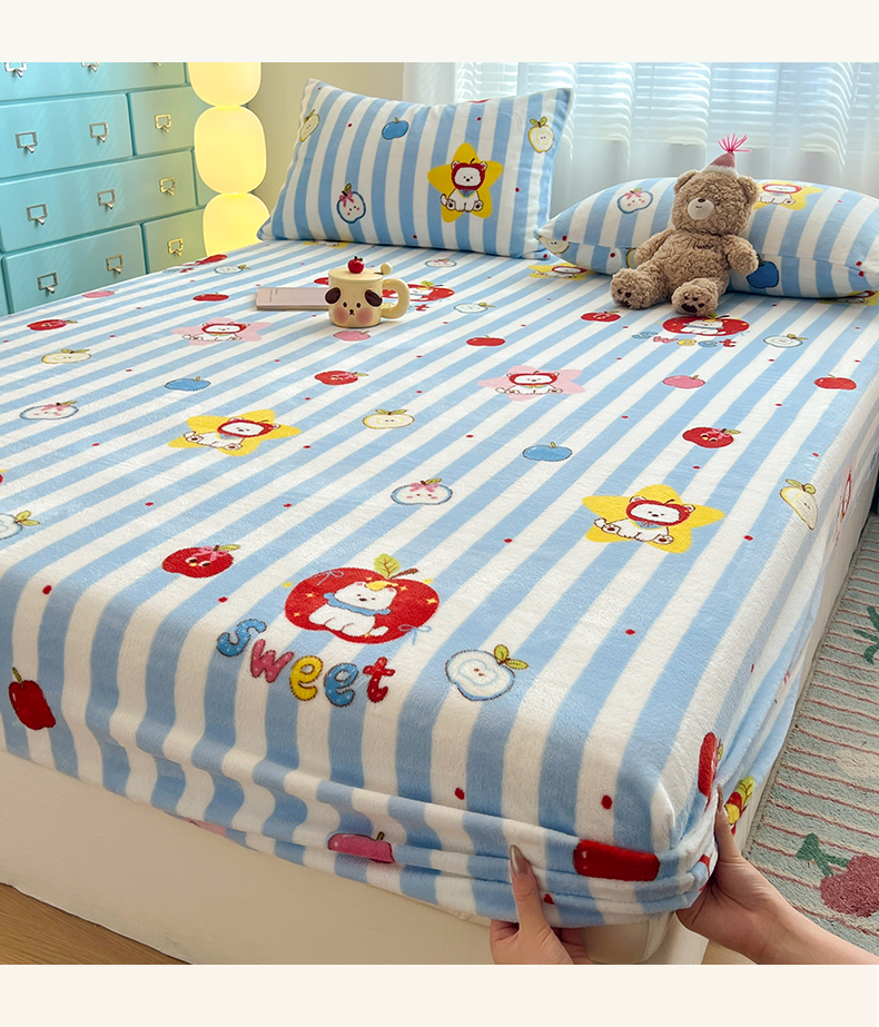 金鑫汇家纺 2025年加厚高克重A类牛奶绒单床笠 床笠单件 苹果萌狗