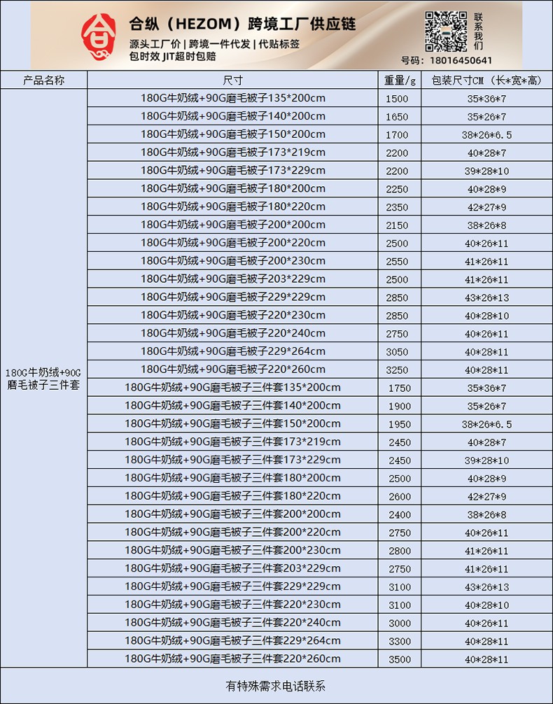 合纵跨境工厂 一件定制pod模式jit跨境180G牛奶绒被子三件套一件代发temu希音集采shein亚马逊速卖通 02510140028