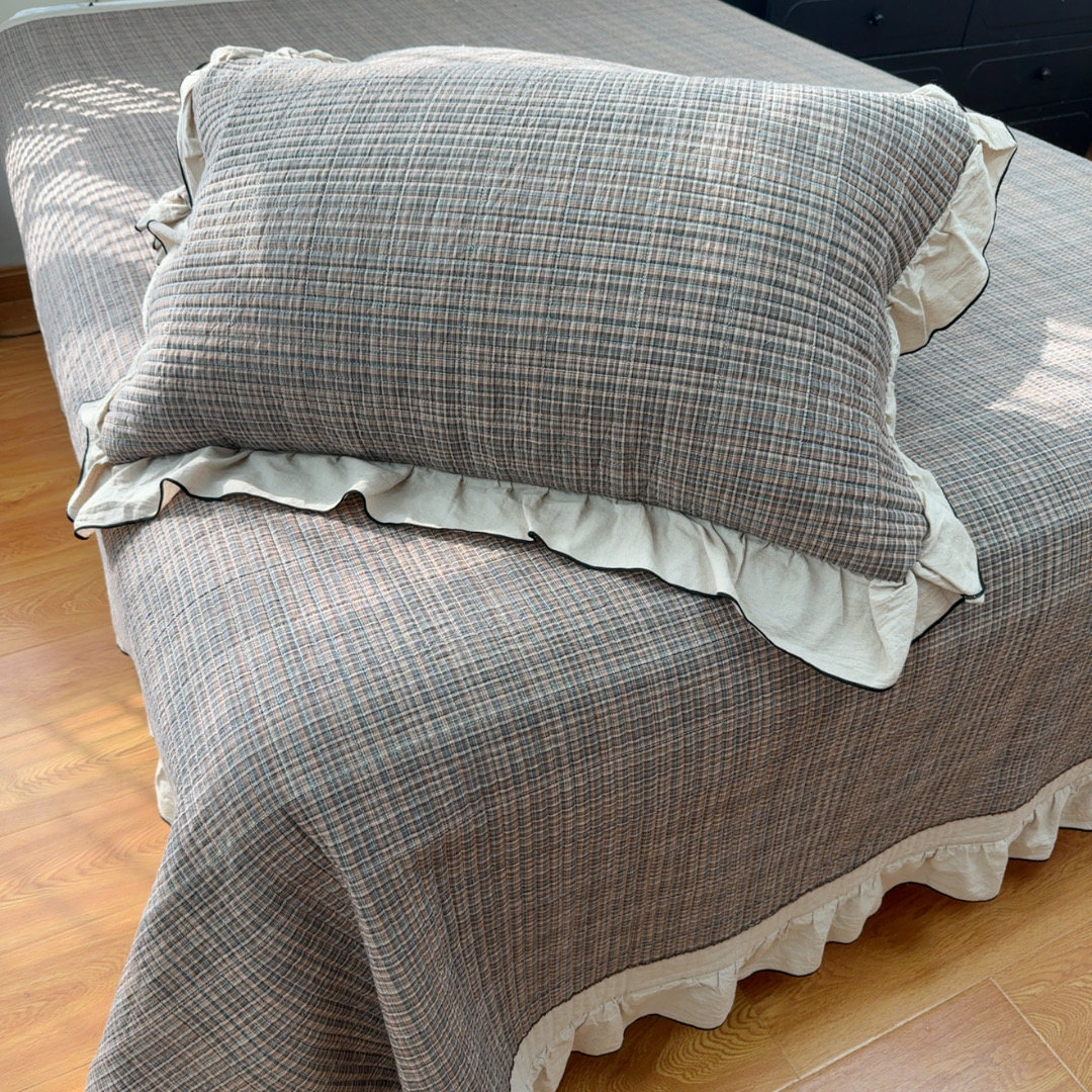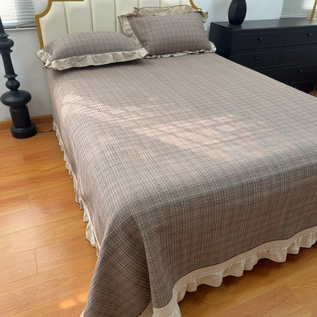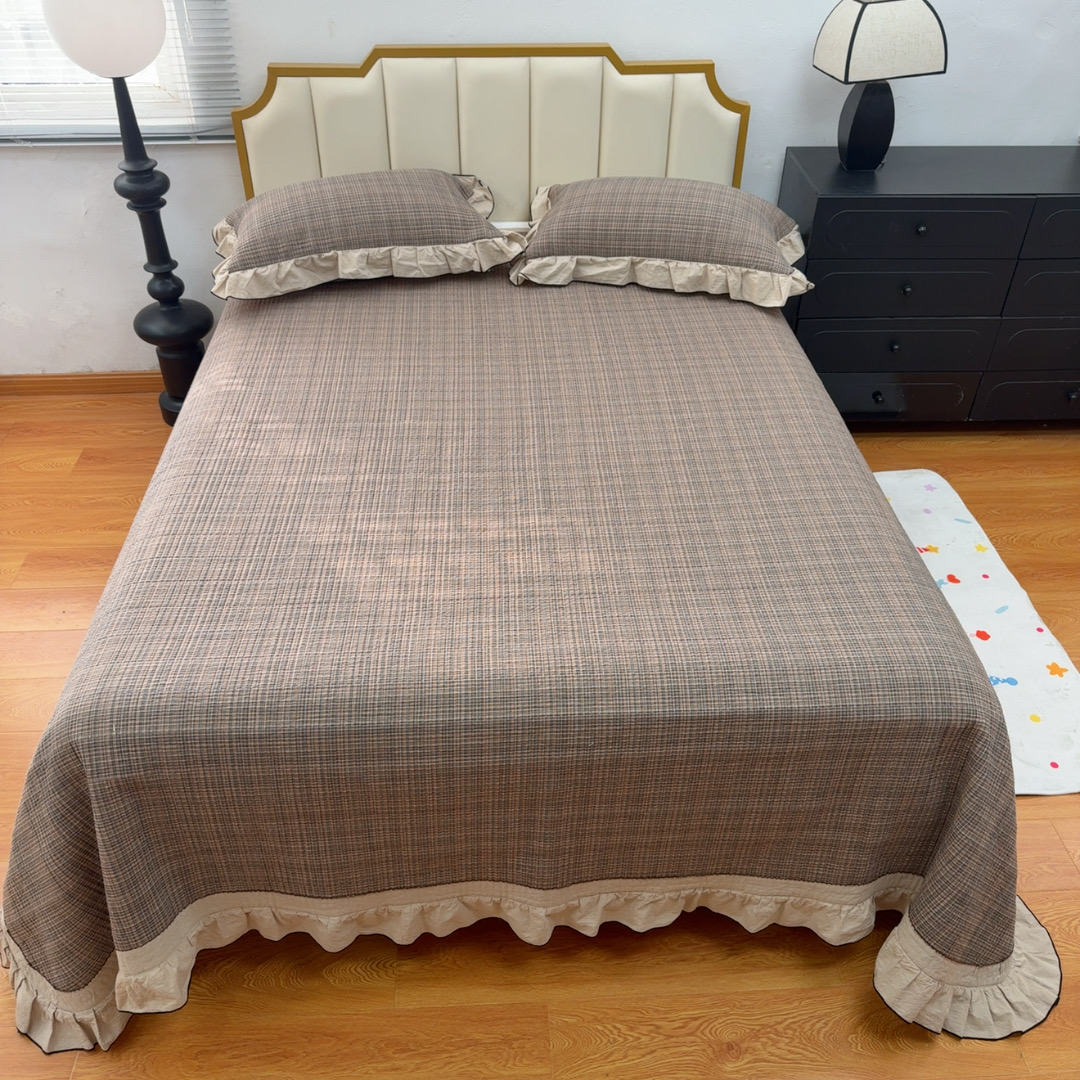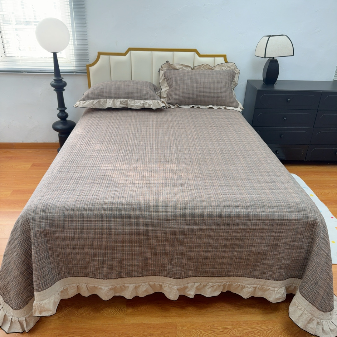 暖居 2026年新款全棉色织水洗棉高温砂洗床盖三件套四件套 云曲