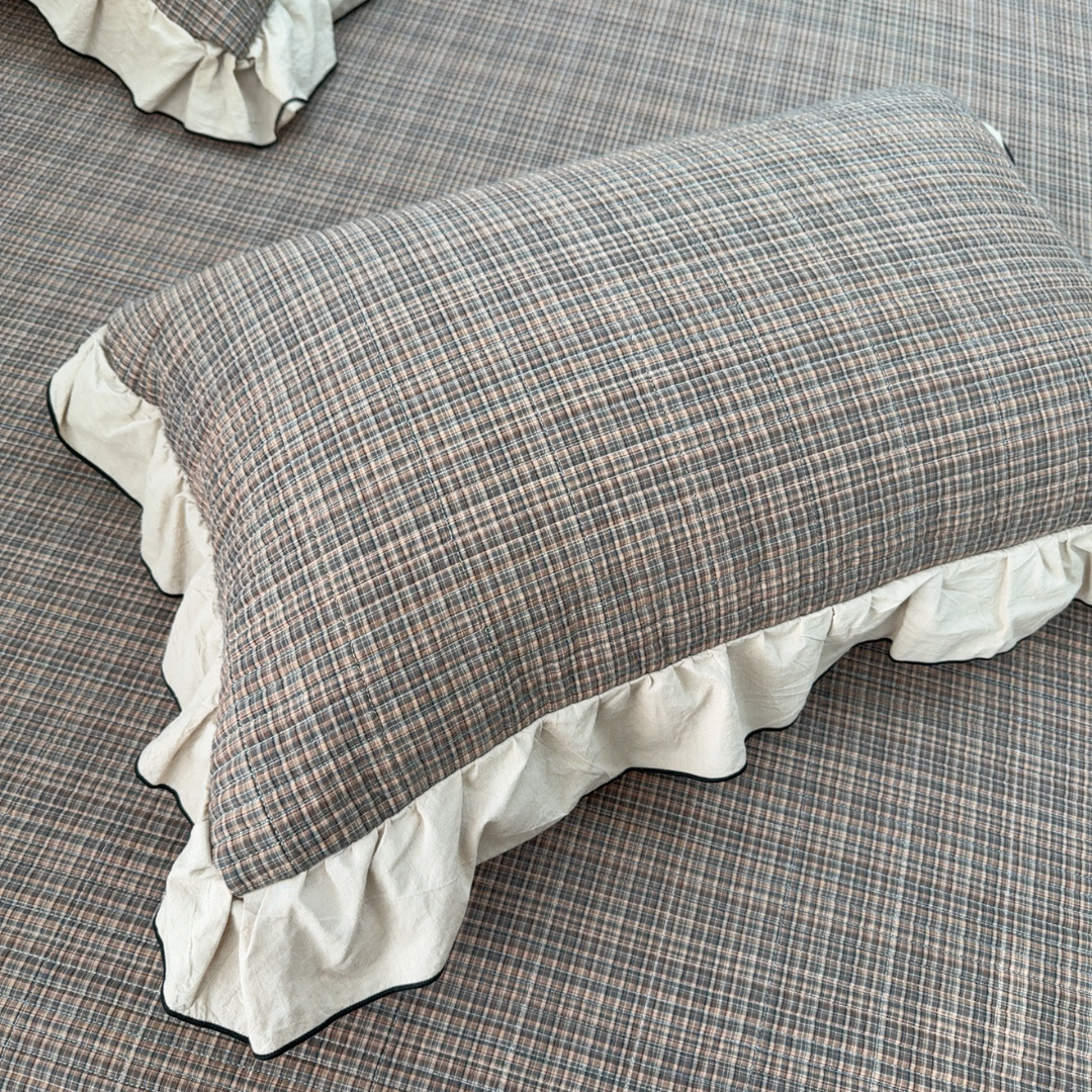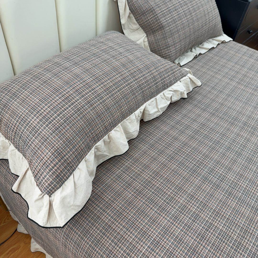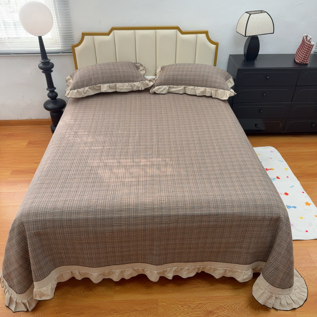 (总)暖居 2026年新款全棉色织水洗棉高温砂洗床盖三件套四件套,英式格纹,复古红,可可灰,纽约格红,森林咖,云曲