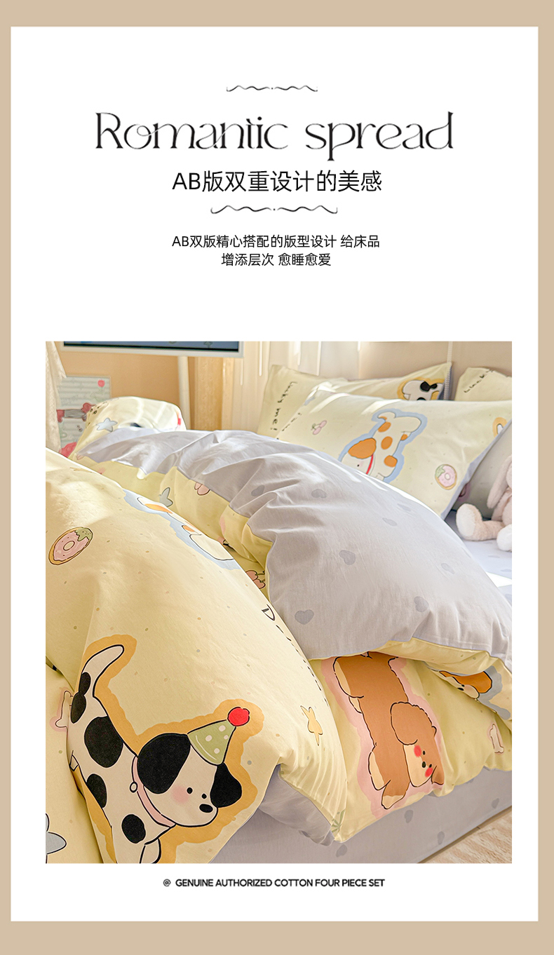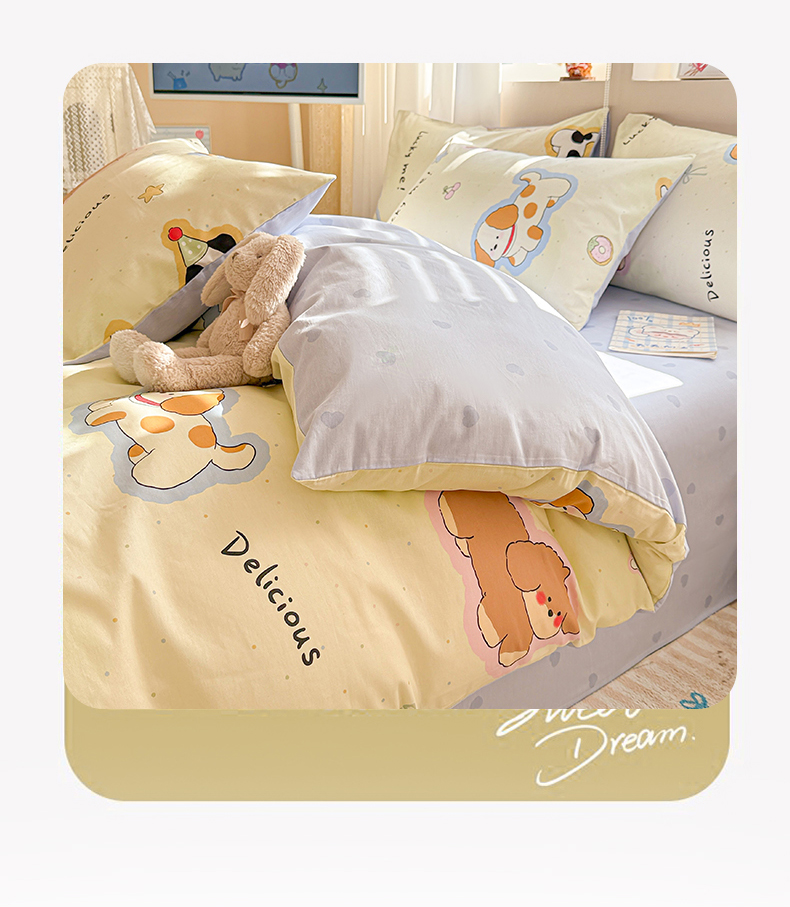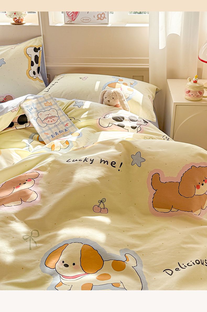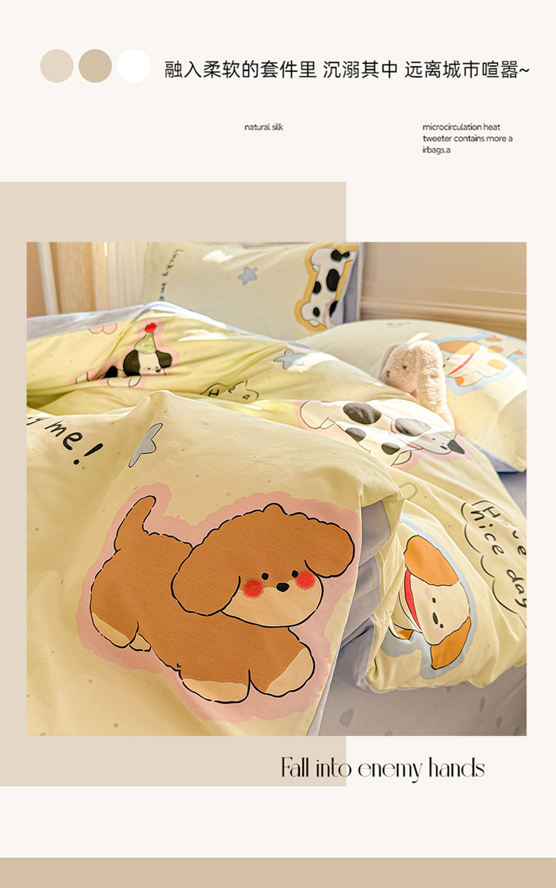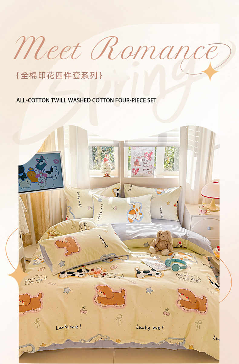 曼之夏 2025新款全棉印花四件套-系列二 奶油羞羞狗