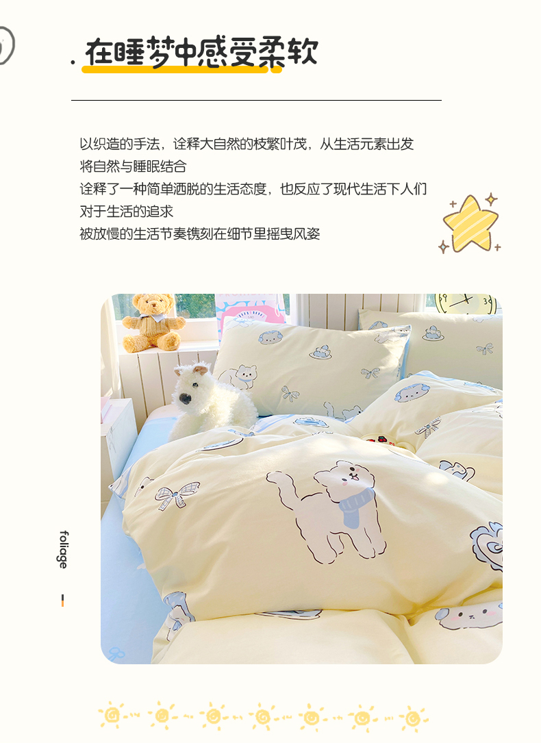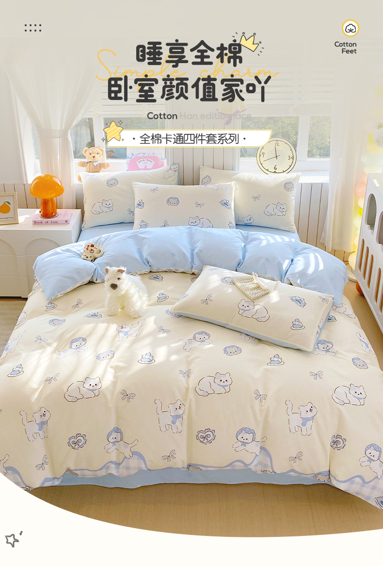 当前位置: 91家纺网 > 商品网购 > 床品套件 > 四件套 > 全棉普通四件套 > 小懒猪 2026新款全棉印花卡通系列四件套 喵语时光