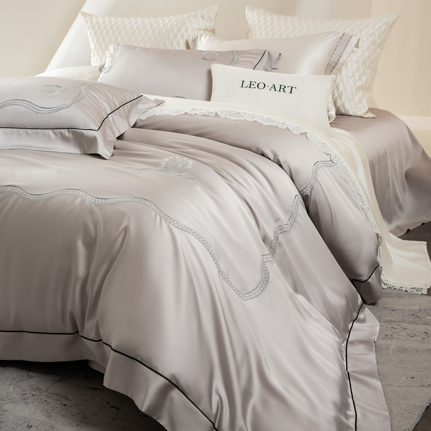 (总)涞澳家纺 2025新款埃及长绒棉四件套-皙光,皙光-卡其灰,皙光-奶白灰,皙光-浅米灰