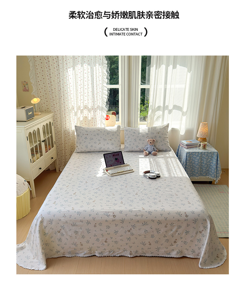 • 91家纺网 家纺一手货源 找家纺 沐芷 2026 【提供买家秀】A类白花边床单单件 单人双人床单三件套 徘徊兔兔