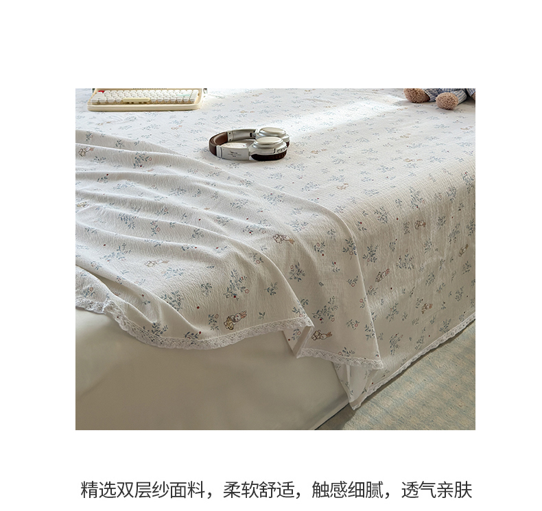 沐芷 2026 【提供买家秀】A类白花边床单单件 单人双人床单三件套 徘徊兔兔