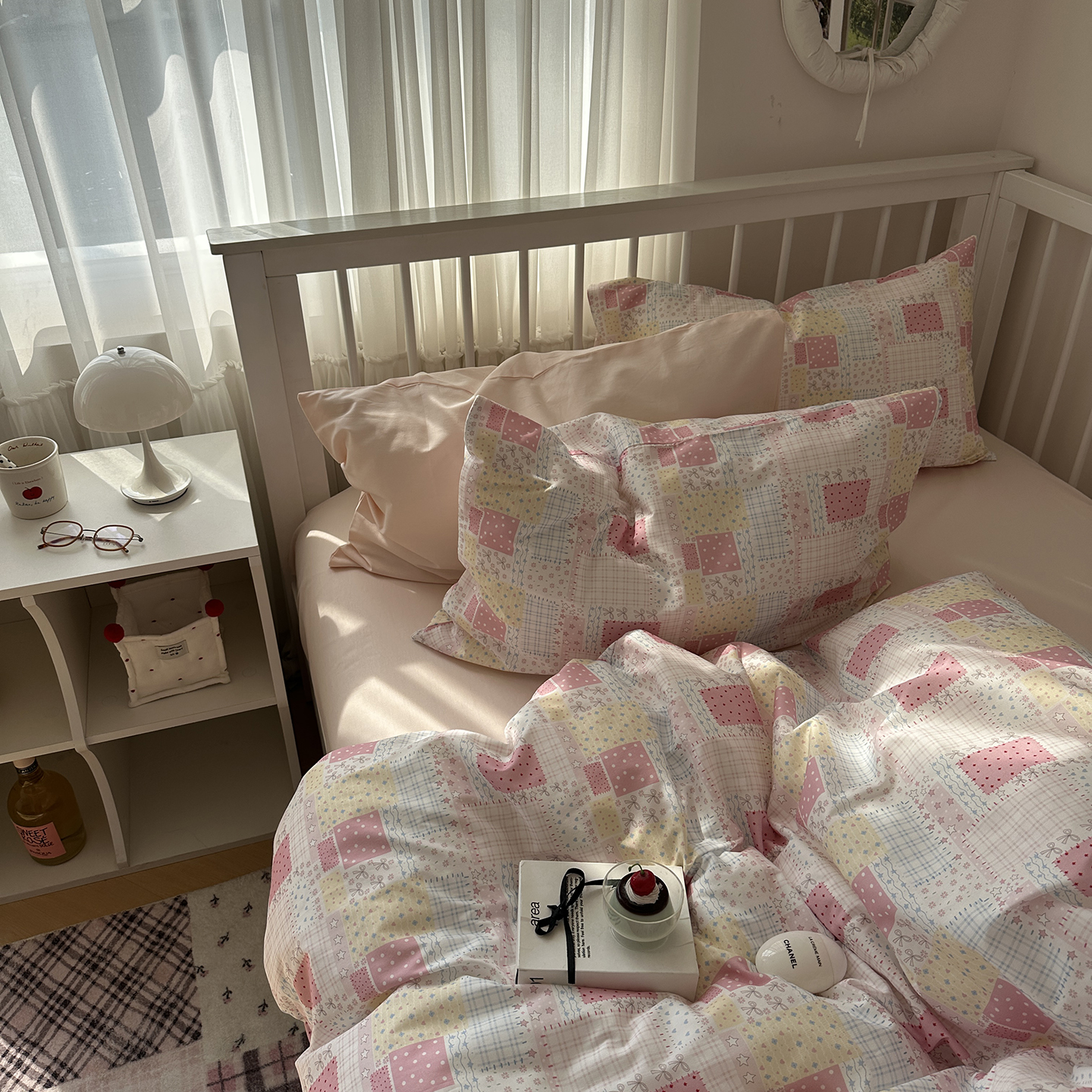 (总)尺素 2026田园小清新纯棉四件套出口韩国ins博主风全棉被套纯色加大床单1.8床笠印花枕套学生宿舍三件套,春不晚 桃粉,花似锦 奶白,紫鸢千夏紫