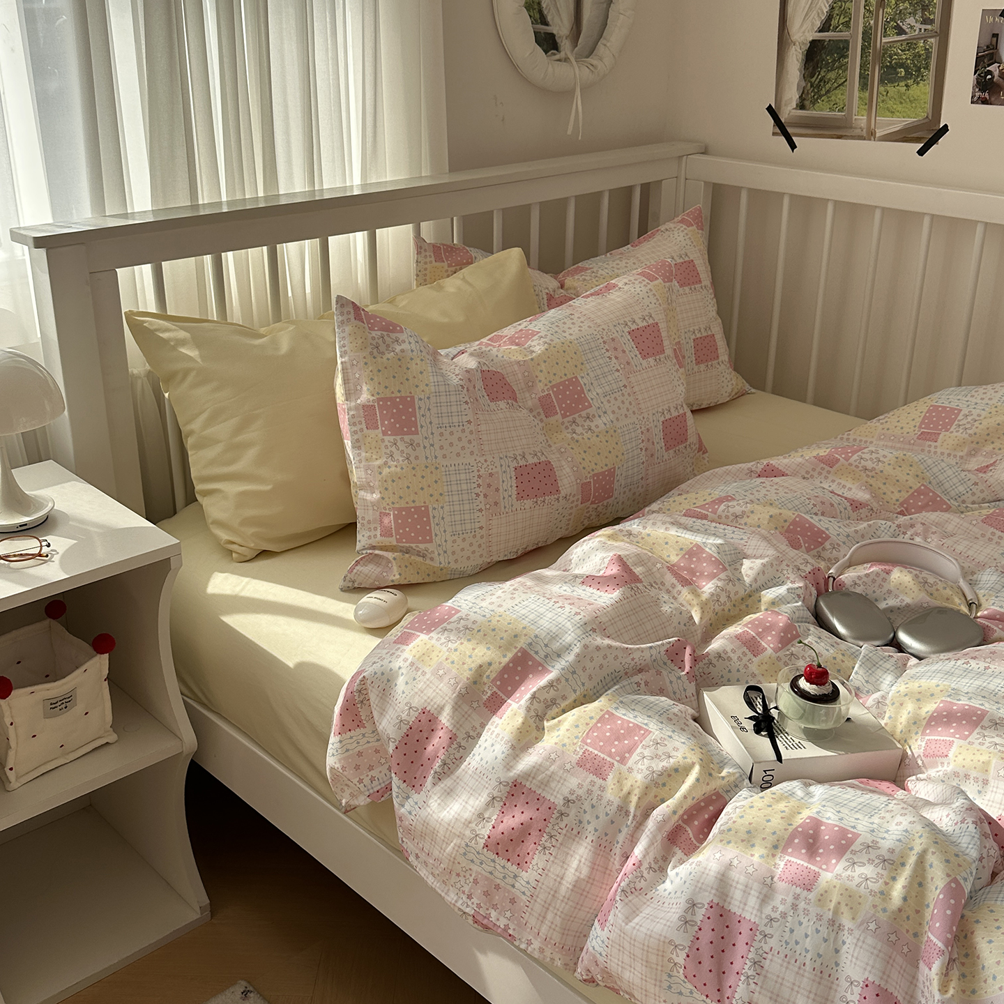(总)尺素 全棉40支喷气13372韩国ins设计师四件套,花舞,篱落粉,篱落黄,落英,派对,童趣,涂鸦,小粉兔,雪地熊