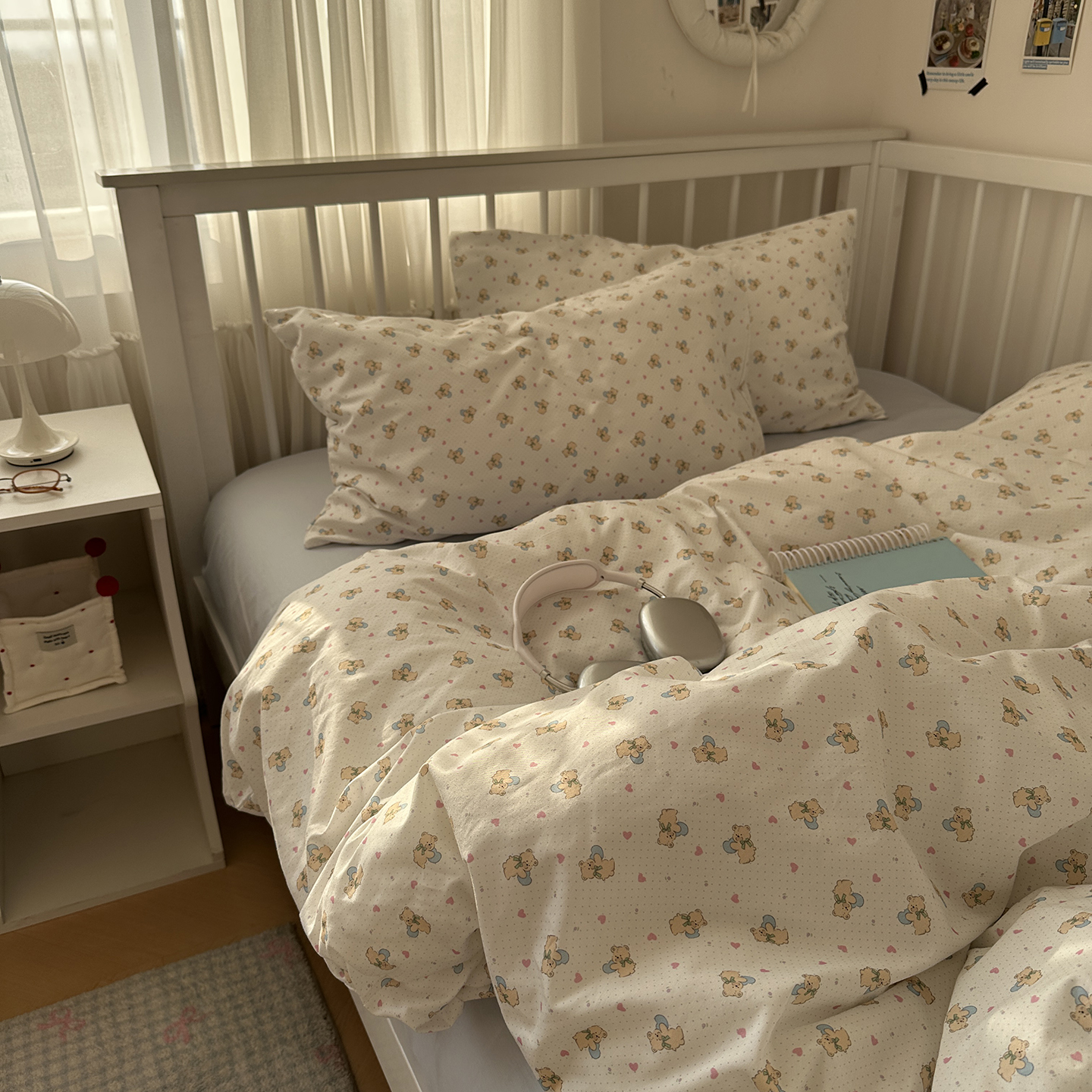 (总)尺素 2025新款纯棉卡通ins风四件套可爱少女风全棉被套纯色1.8床笠加大床单学生1.2三件套,告白熊--浅蓝,格调粉--奶黄,格调粉--桃粉,蓝白情书--浅蓝,清梦--冰沙绿,清梦--浅黄,小熊软糖--焦糖