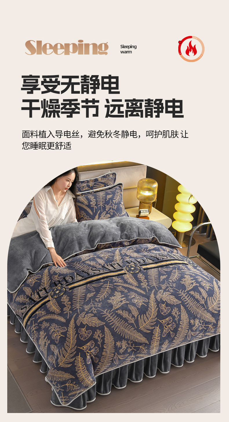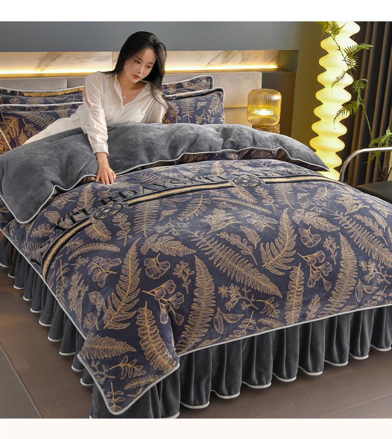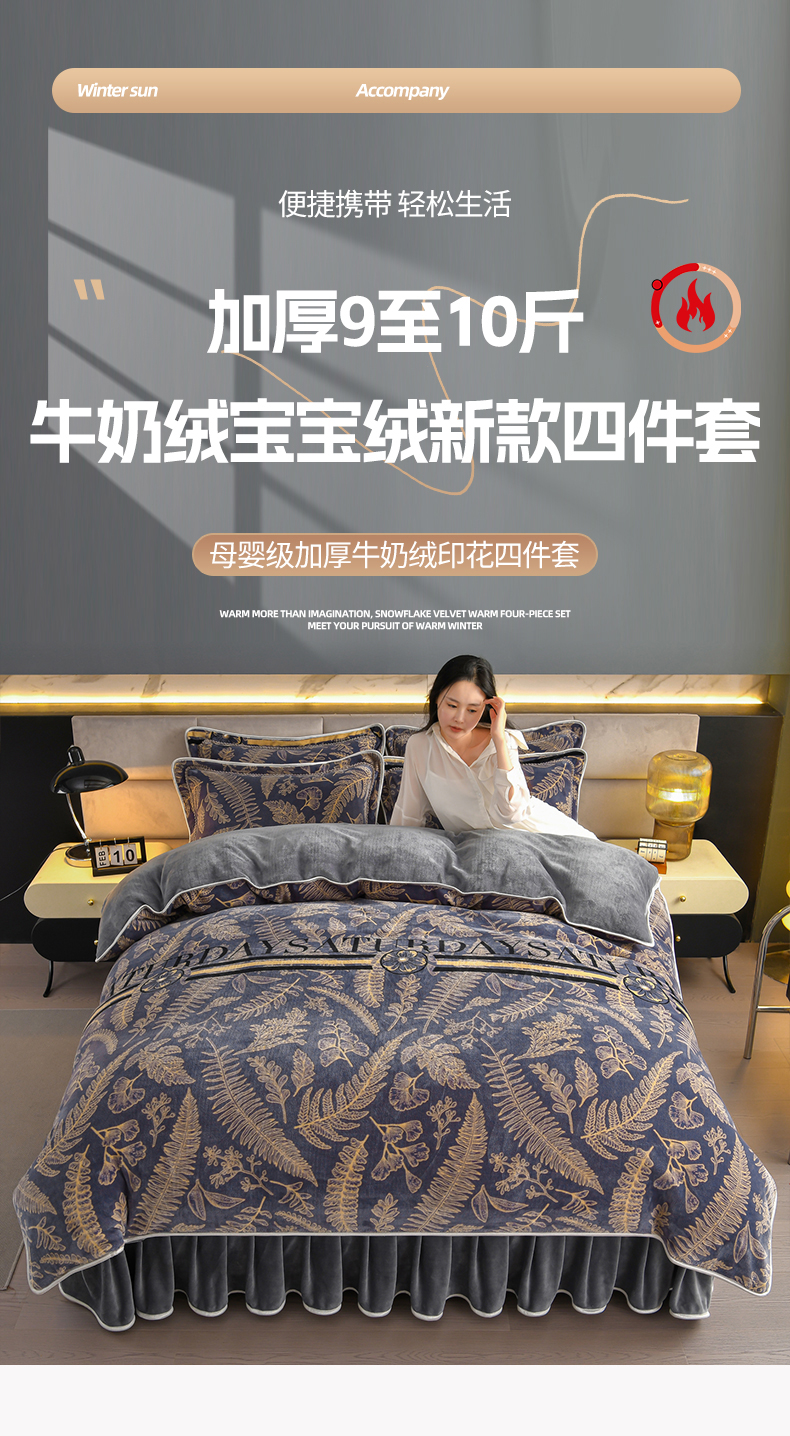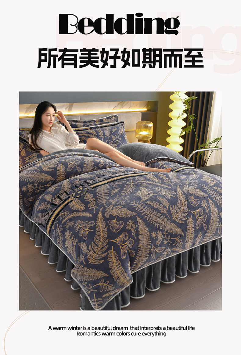 董成龙家纺 20256新款高克重9-10斤加厚印花超柔牛奶绒爆款法莱绒金貂绒床裙四件套控价 金枝玉叶