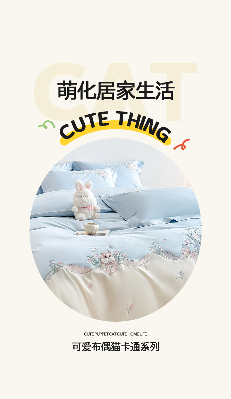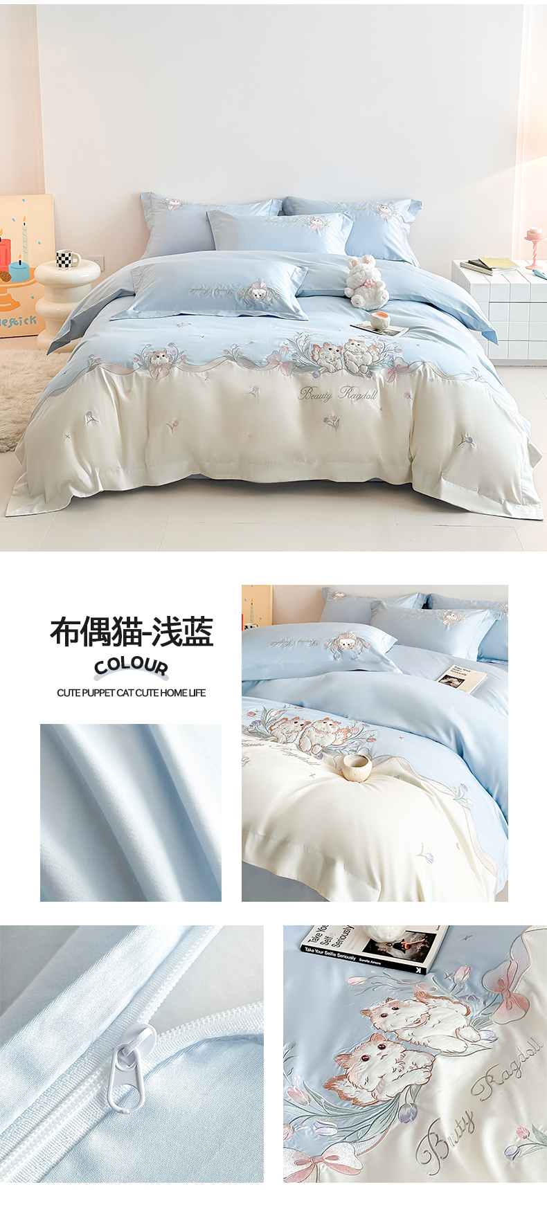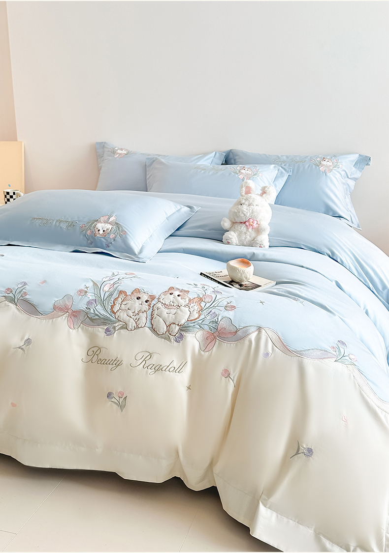 当前位置: 91家纺网 > 商品网购 > 床品套件 > 四件套 > 全棉普通四件套 > 置顶家纺 2026新款全棉刺绣系列四件套-布偶猫 布偶猫-浅蓝