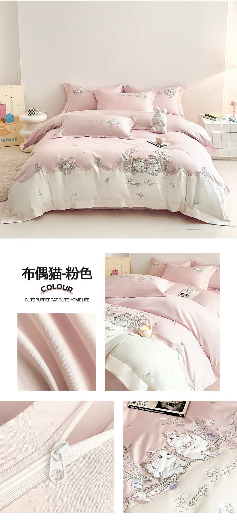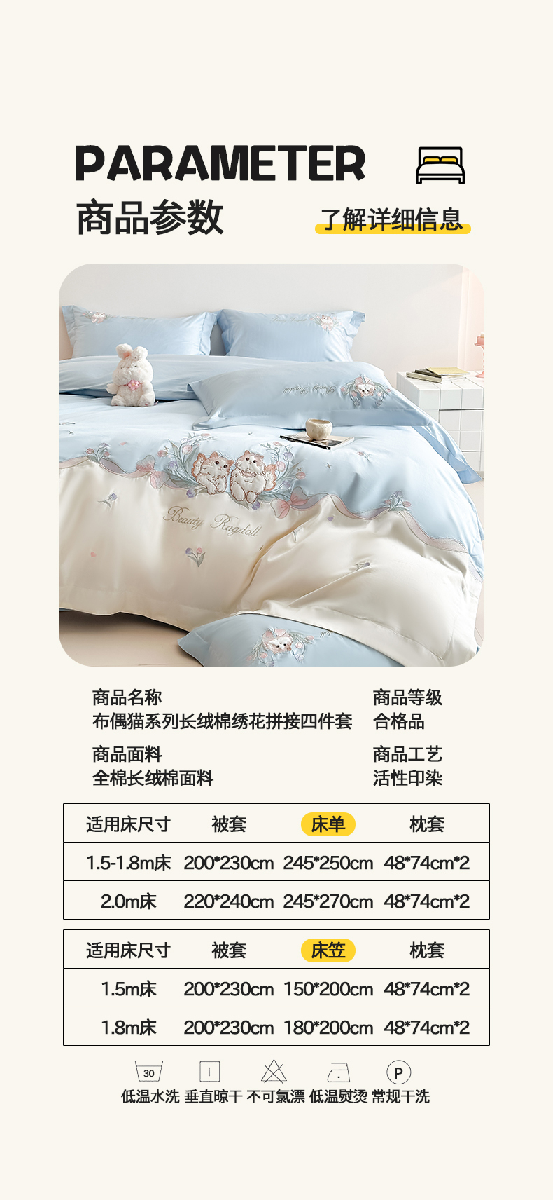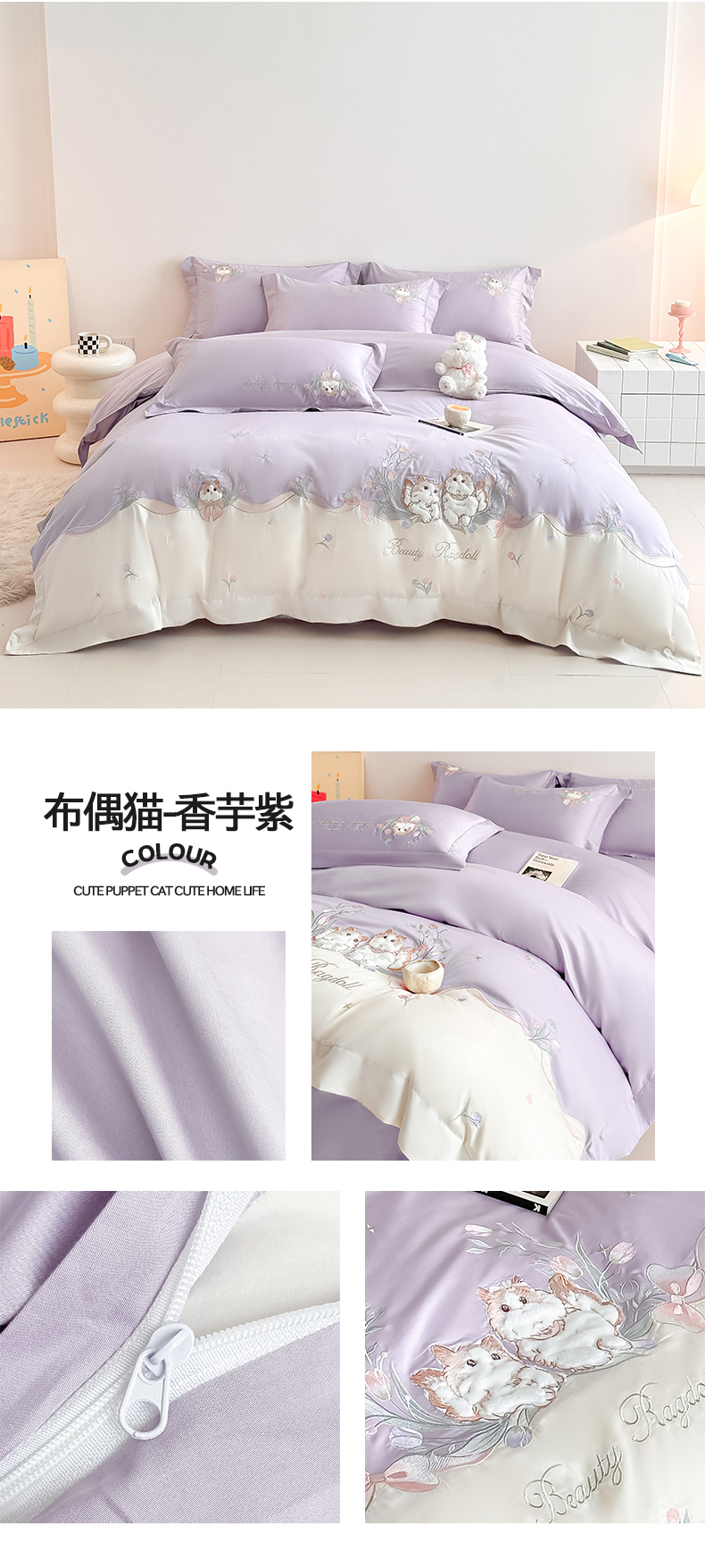 当前位置: 91家纺网 > 商品网购 > 床品套件 > 四件套 > 全棉普通四件套 > 置顶家纺 2026新款全棉刺绣系列四件套-布偶猫 布偶猫-浅蓝