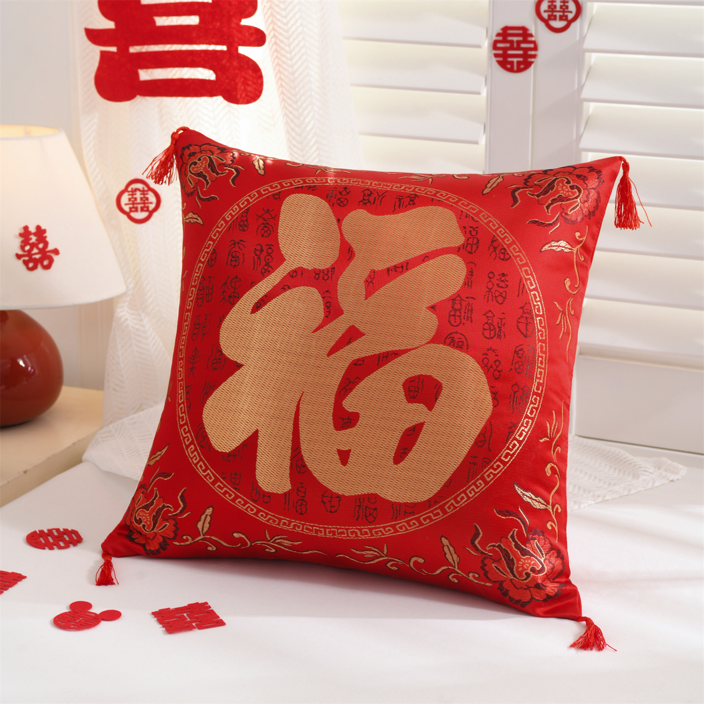 当前位置: 91家纺网 > 商品网购 > 居家日用 > 靠垫/抱枕 > 仁宇枕业 2026新款过年新年大红结婚婚庆喜庆靠枕腰靠抱枕 贡缎婚庆抱枕-全家福