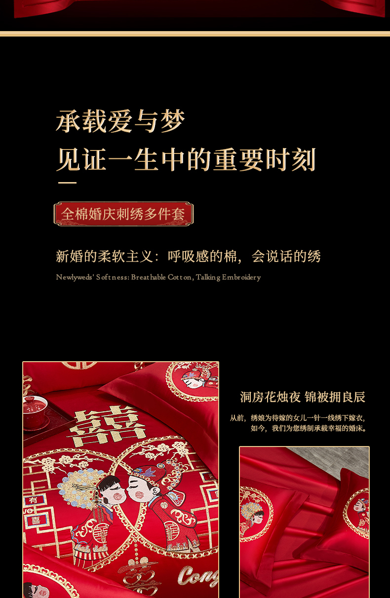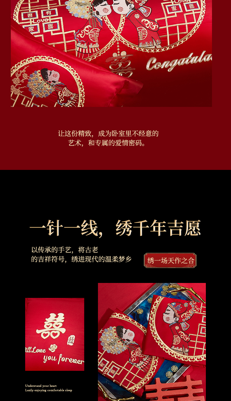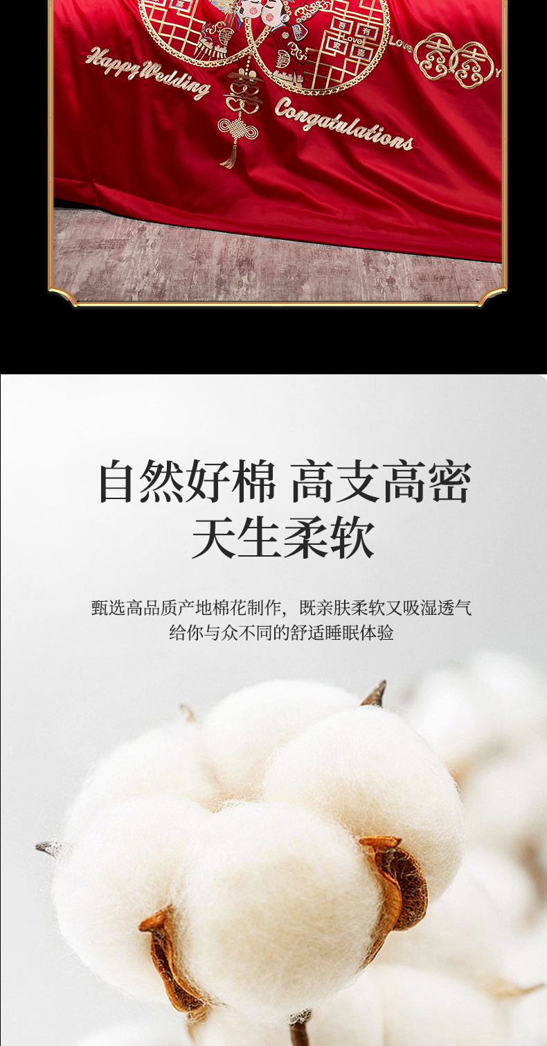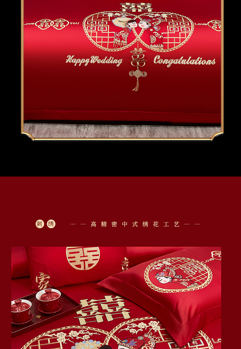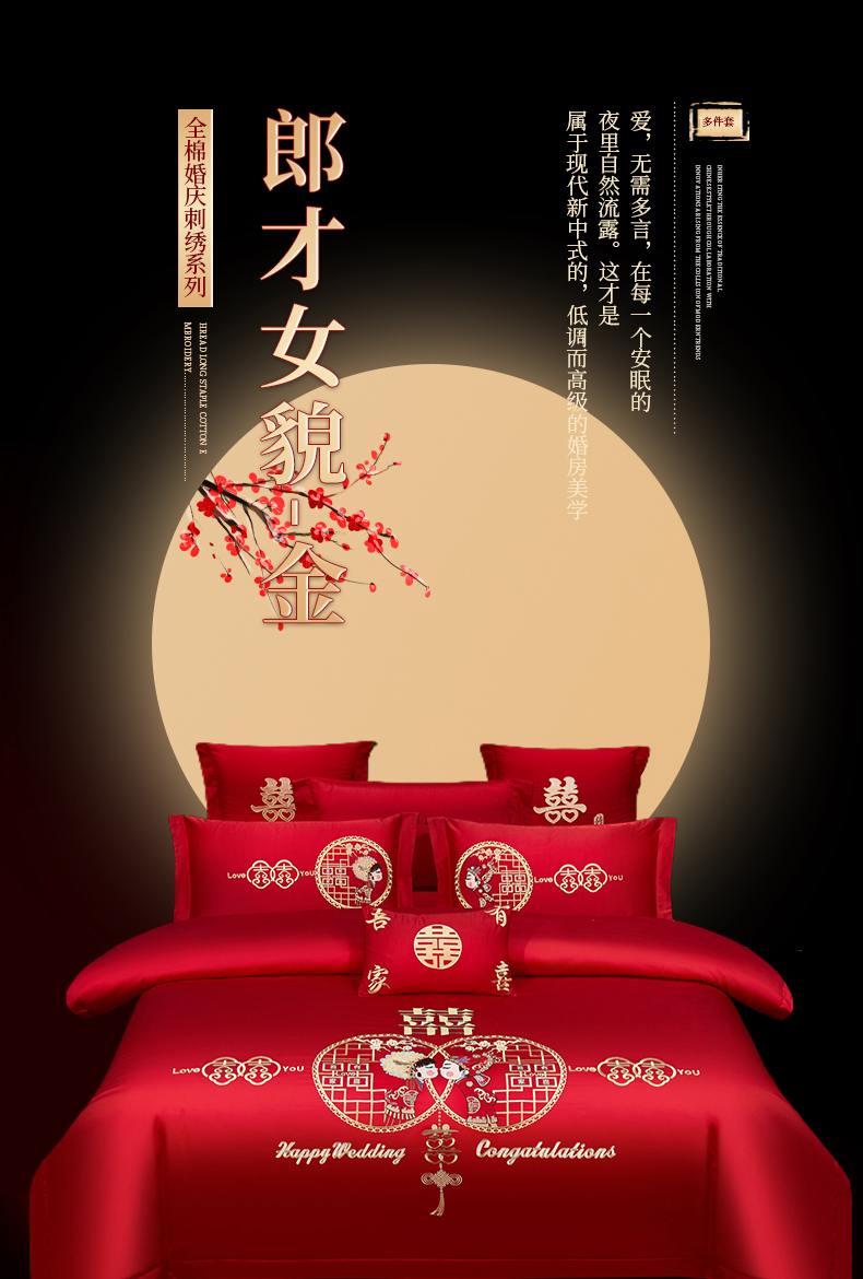 当前位置: 91家纺网 > 商品网购 > 床品套件 > 四件套 > 婚庆四件套 > 浩情国际婚庆供货中心 2026新款100%全棉长绒棉纯棉婚庆四件套结婚刺绣六件套多件套长期供货 (提供买家秀) 郎才女貌-金