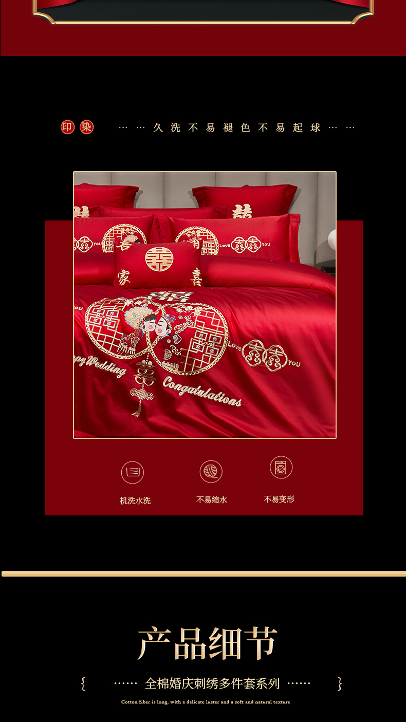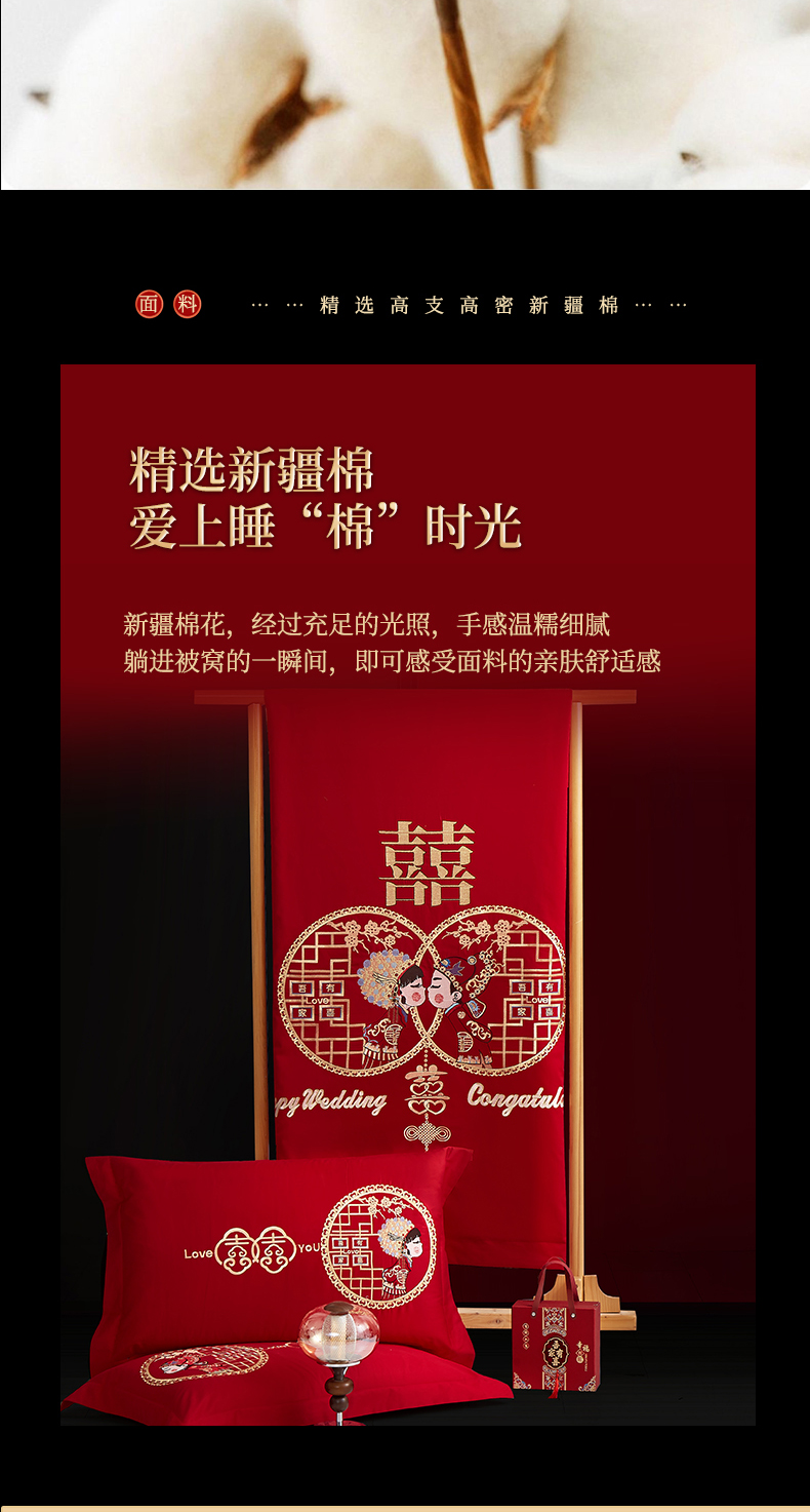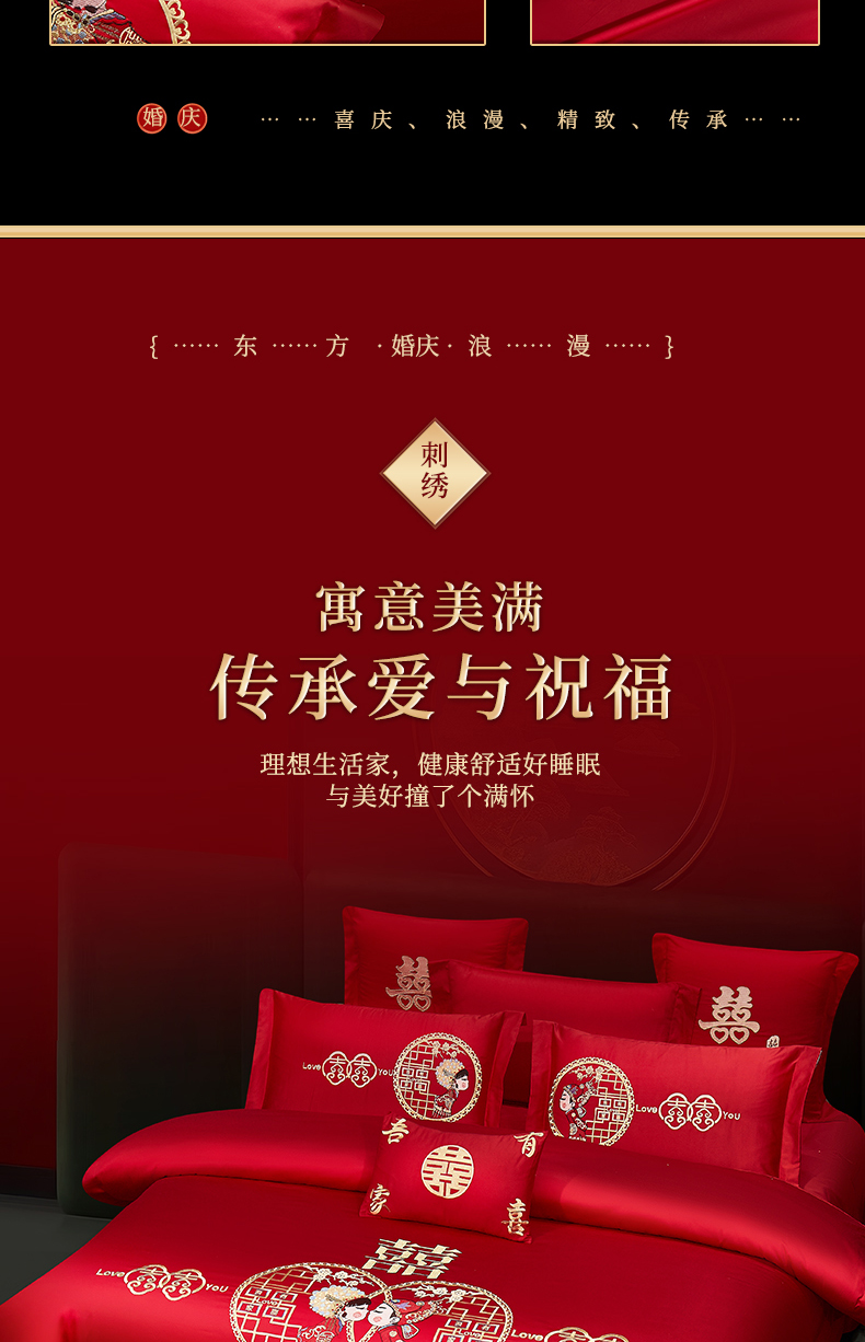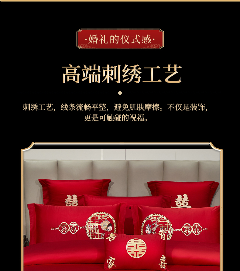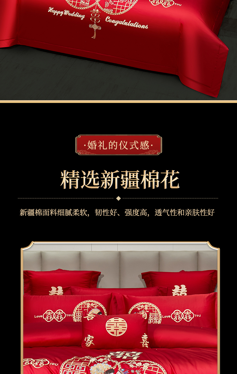 当前位置: 91家纺网 > 商品网购 > 床品套件 > 四件套 > 婚庆四件套 > 浩情国际婚庆供货中心 2026新款100%全棉长绒棉纯棉婚庆四件套结婚刺绣六件套多件套长期供货 (提供买家秀) 郎才女貌-金