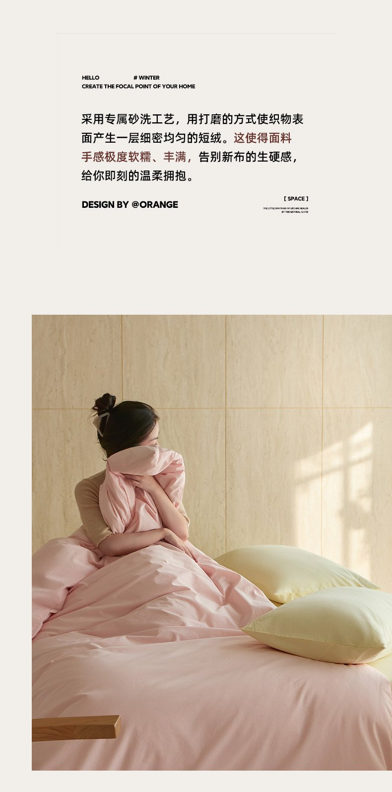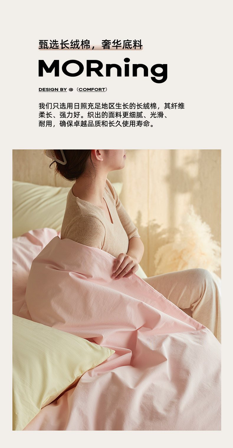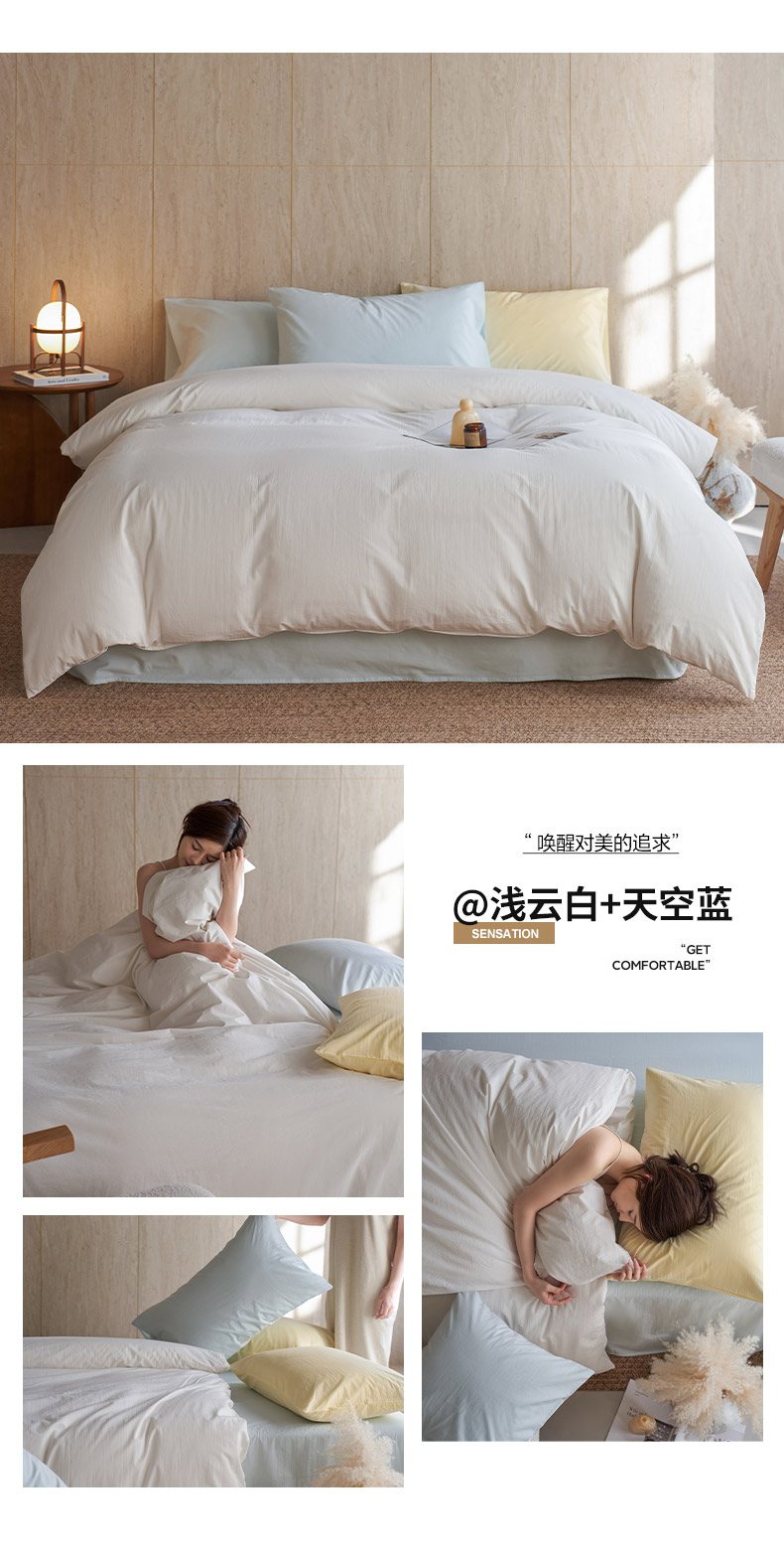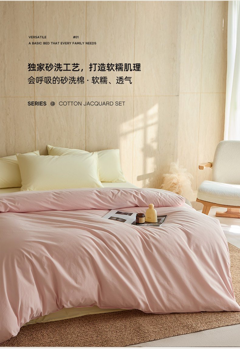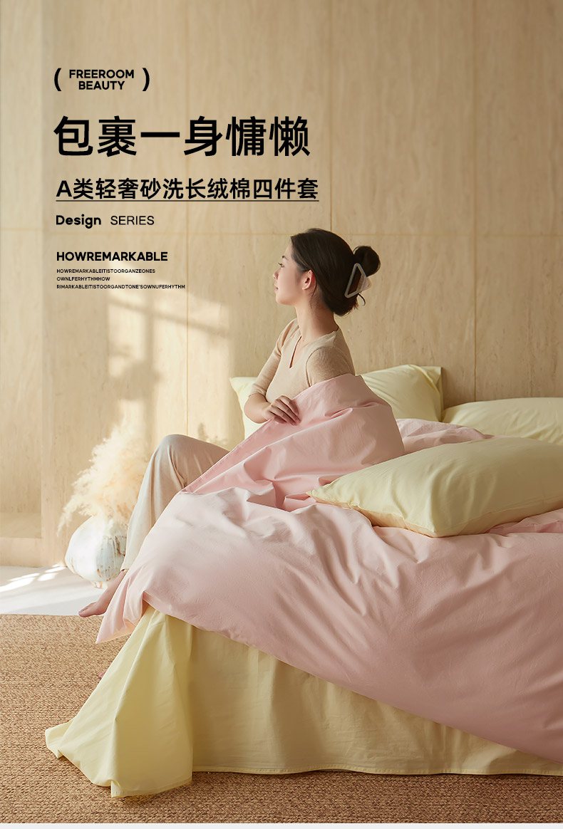 当前位置: 91家纺网 > 商品网购 > 床品套件 > 四件套 > 全棉普通四件套 > 轩和家居 2026新款全棉高支旧感砂洗长绒棉拼色四件套 薄樱粉+淡黄色