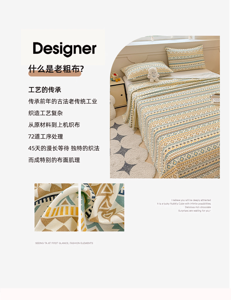 当前位置: 91家纺网 > 商品网购 > 床上用品 > 床单 > 爱彼家纺 2026新升级细沙工艺款亲肤柔软老粗布床单凉席席子春夏热门款-直播热卖 波西米亚