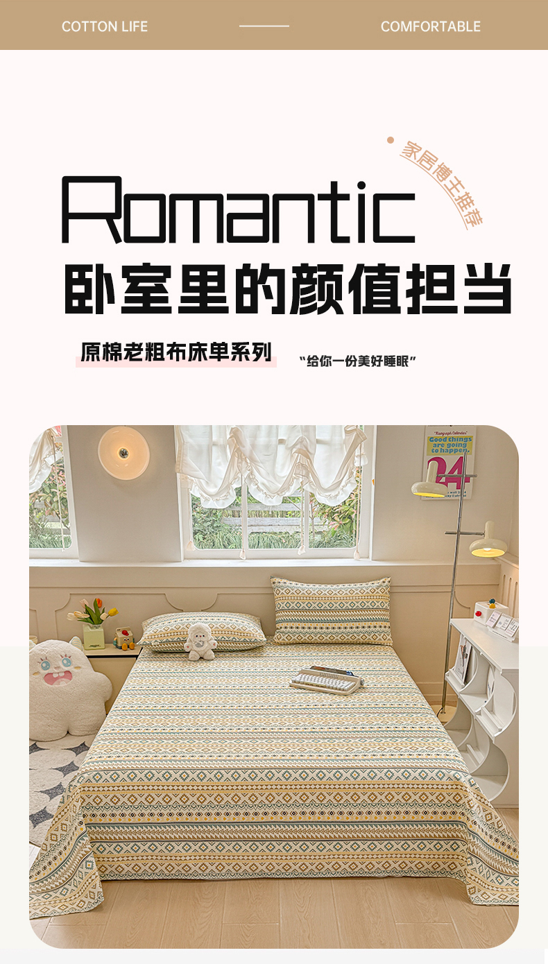 (总)爱彼家纺 2026新款升级细沙印花老粗布床单单品床单床单单件-细沙系列四,花笺,花漾手礼,花屿南瓜,蓝花序,蓝菊绘,山河日立,甜心