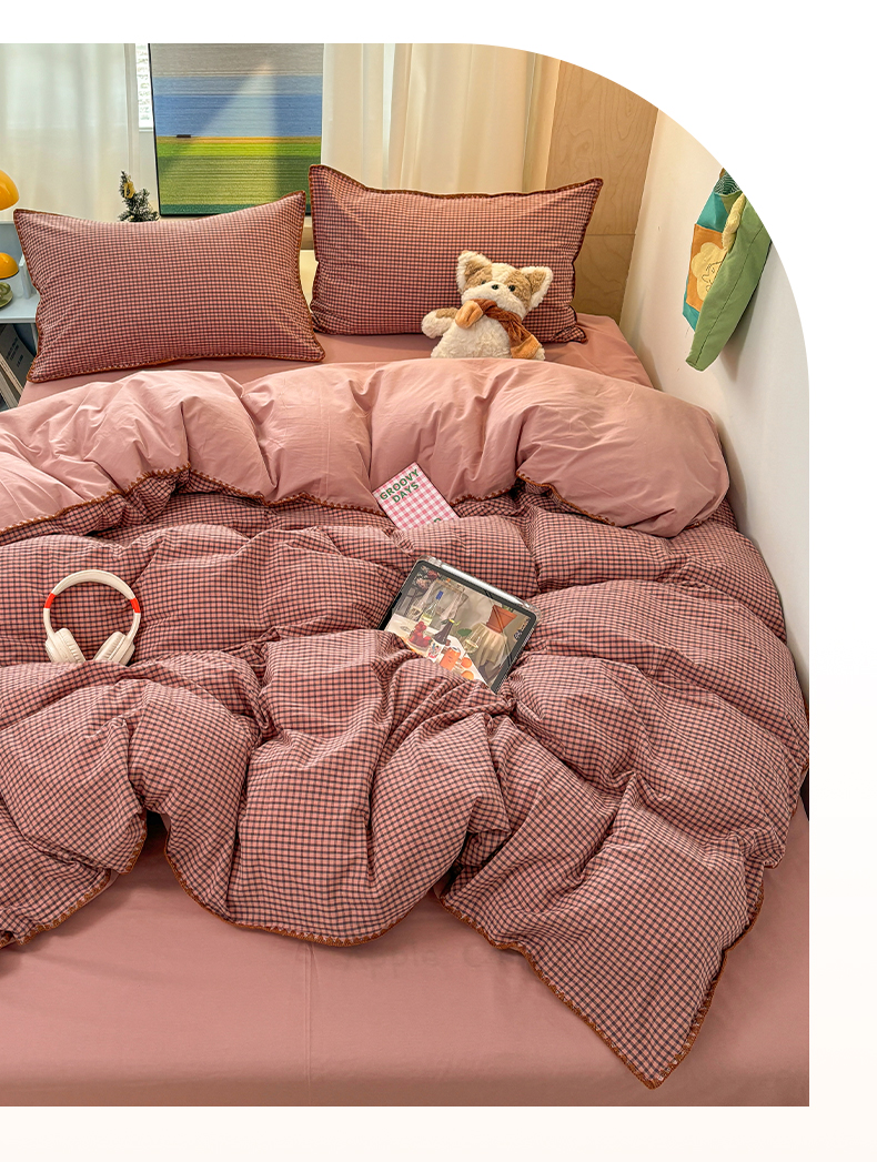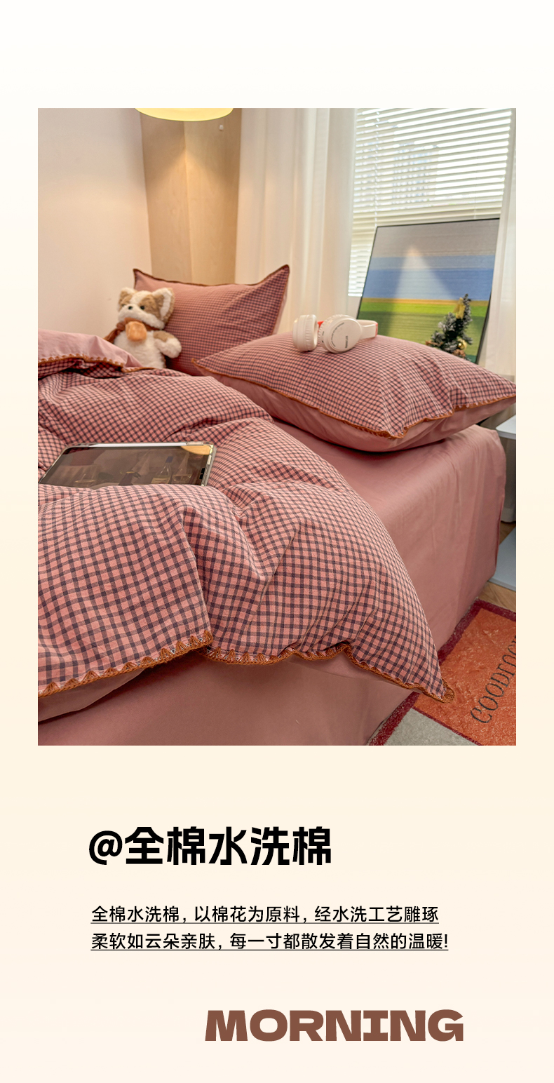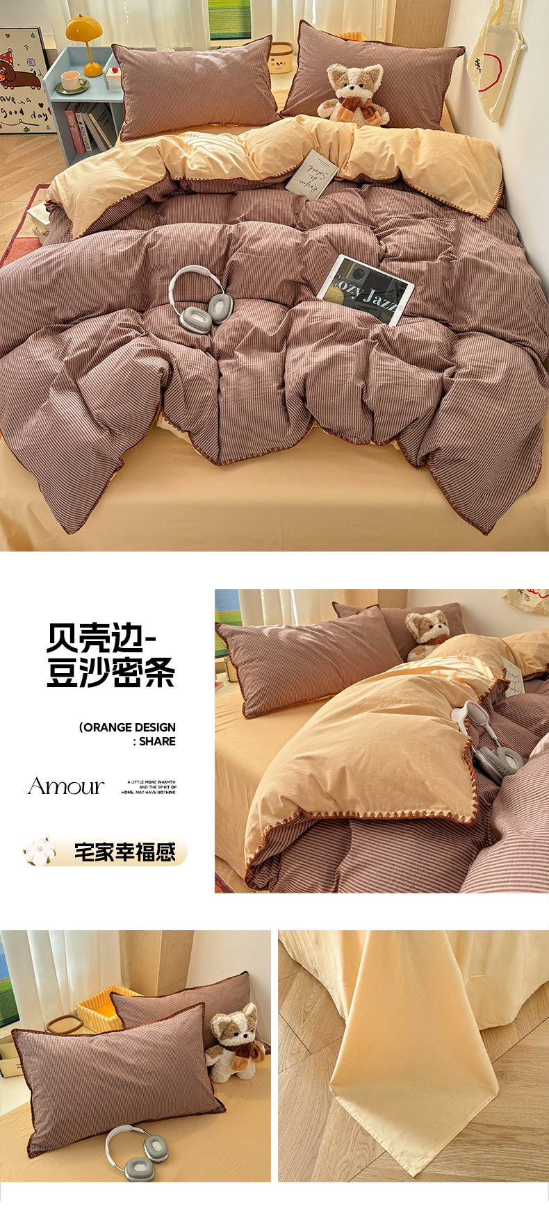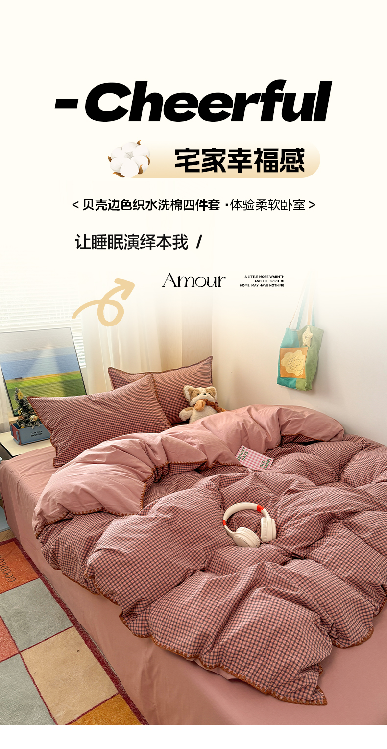 当前位置: 91家纺网 > 商品网购 > 床品套件 > 四件套 > 全棉普通四件套 > 雅居纺家纺 2026新款全棉色织水洗棉贝壳边四件套 贝壳边-豆沙格