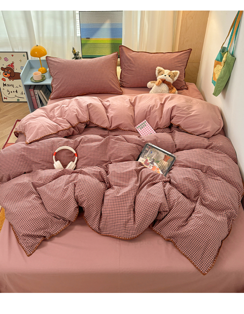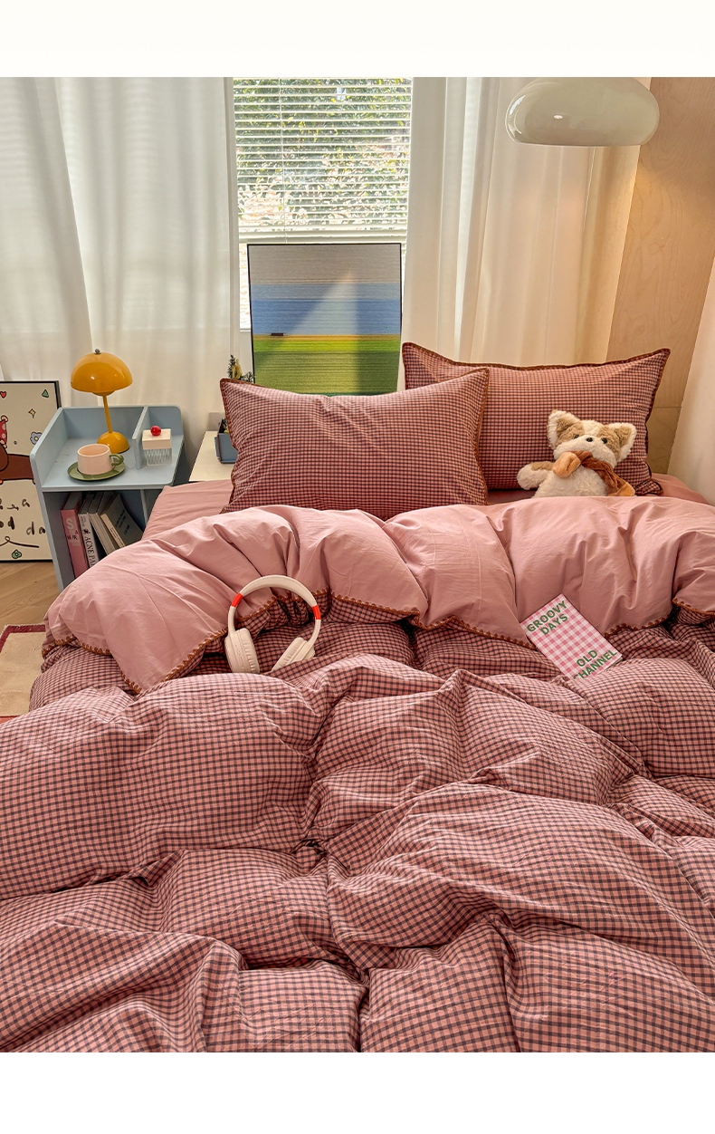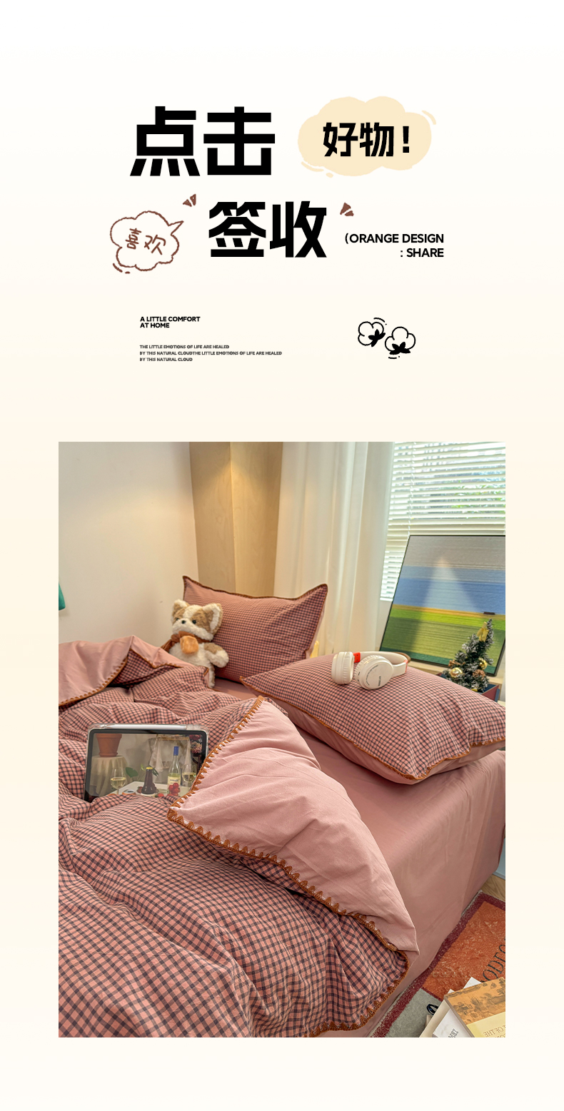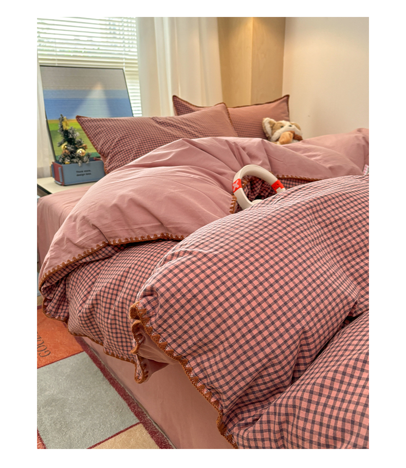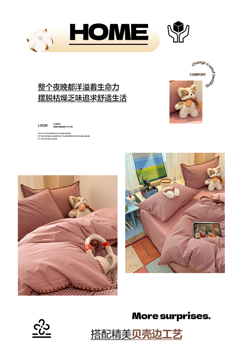 当前位置: 91家纺网 > 商品网购 > 床品套件 > 四件套 > 全棉普通四件套 > 雅居纺家纺 2026新款全棉色织水洗棉贝壳边四件套 贝壳边-豆沙格