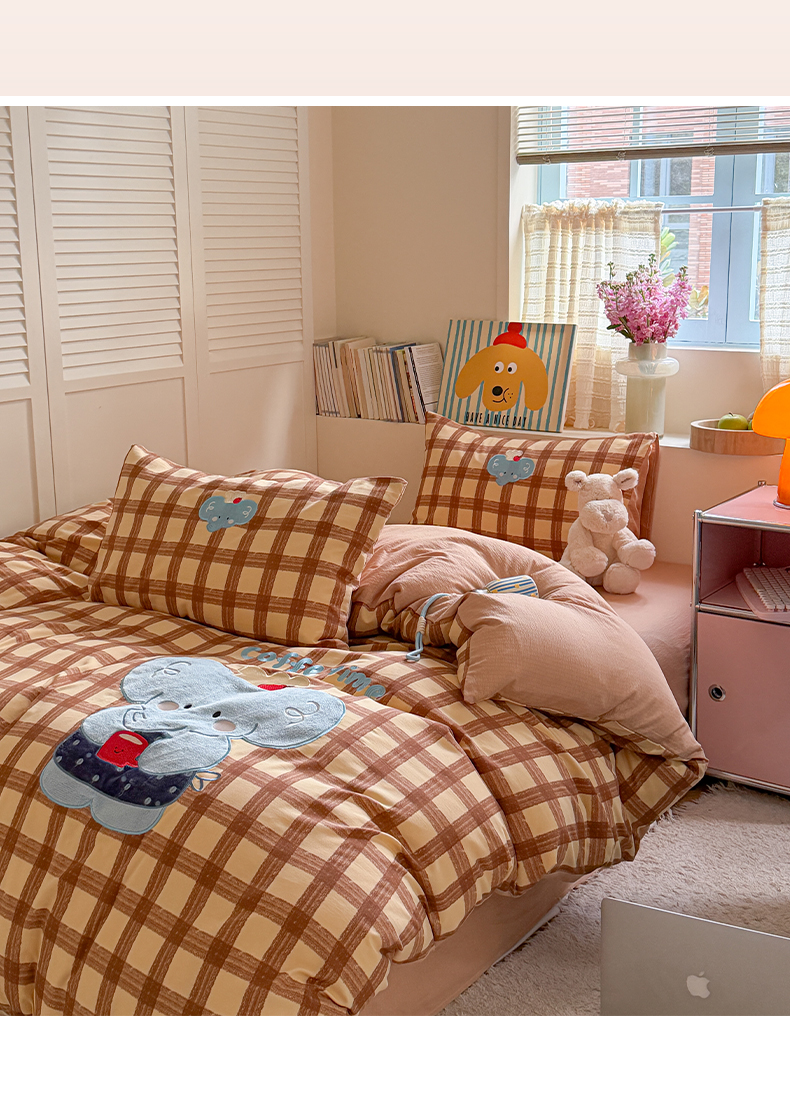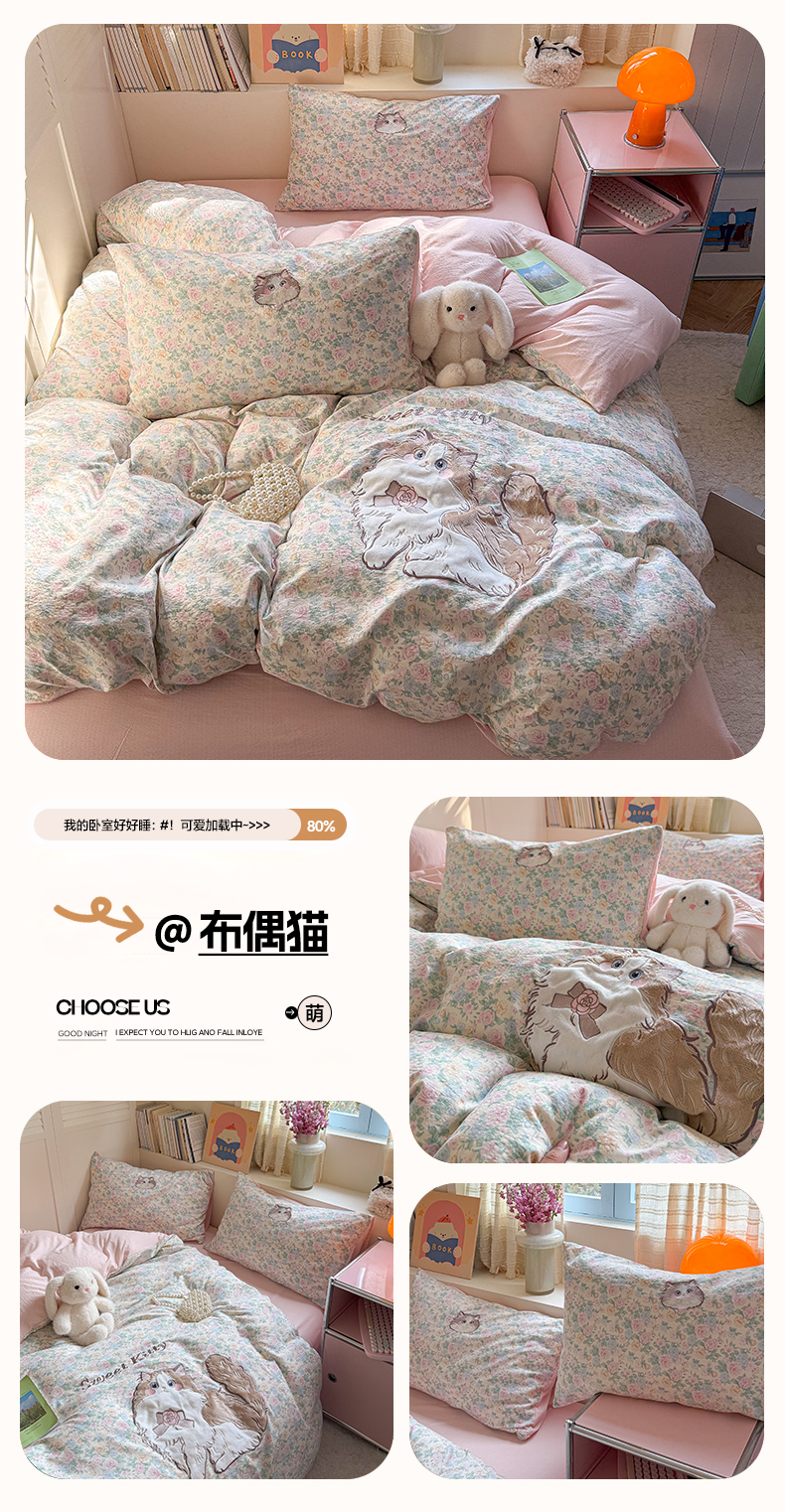 (总)美乐迪家纺 2026新款云感双层纱贴布绣四件套,睡货小狗,兔头小猫