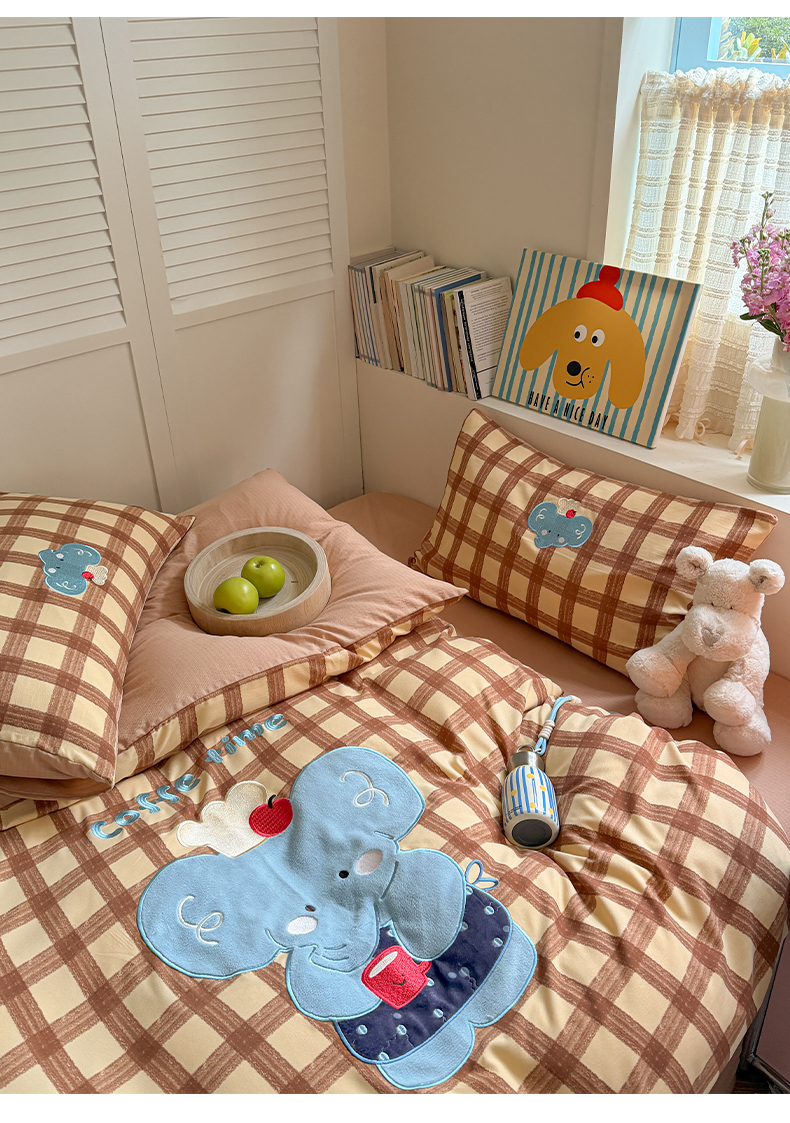(总)美乐迪家纺 2026新款贴布绣云感双层纱四件套,大象,可爱小马,比熊,布偶猫,躲猫猫,头套小猫